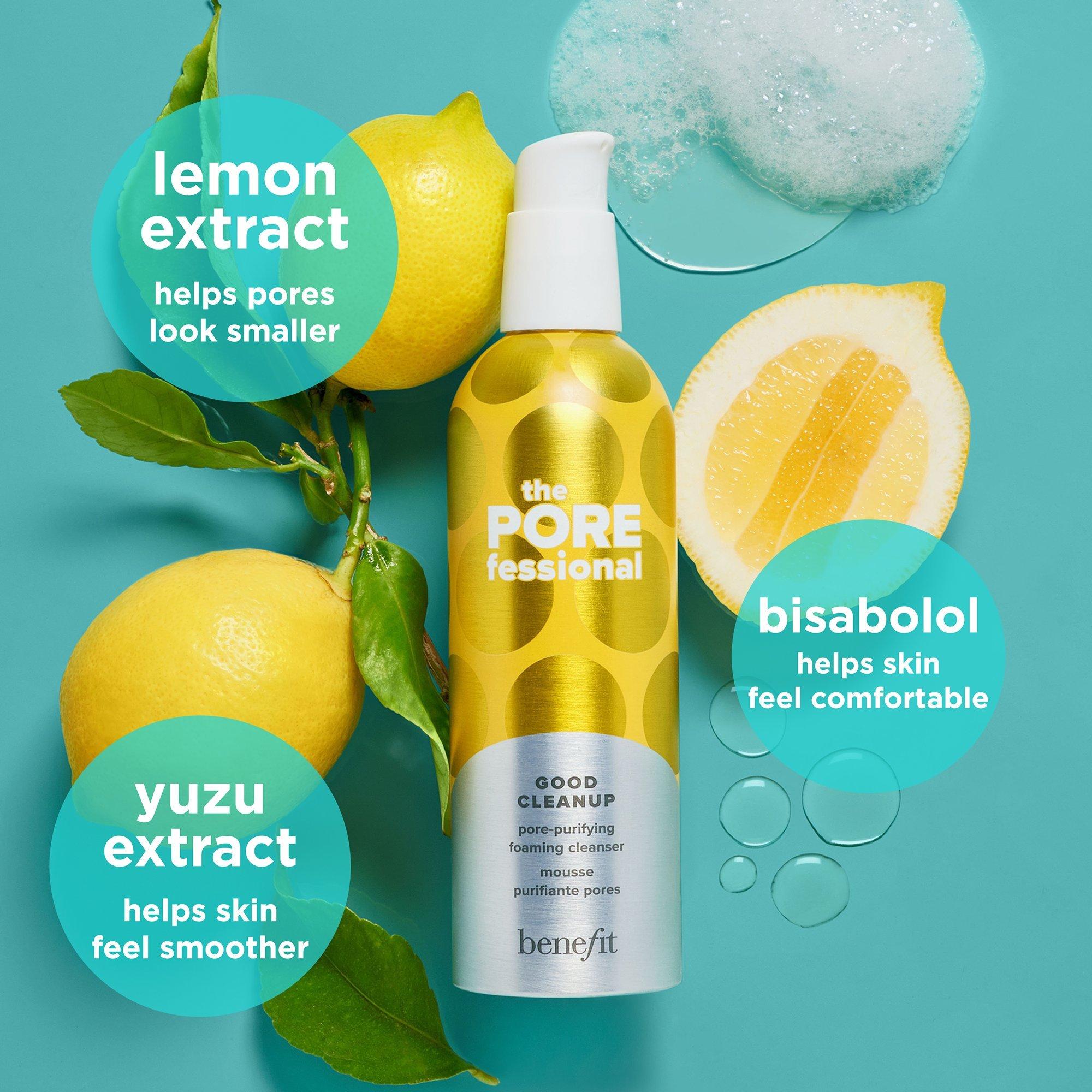 Benefit's The POREfessional Good Cleanup Foaming Cleanser bubbles up into a refreshing, feel good foam for a pore-purifying cleanse. Pores look smaller and refined, and skin looks clearer over time. And with a cleanse this good, your skin will feel fresh and smooth, not tight or stripped.