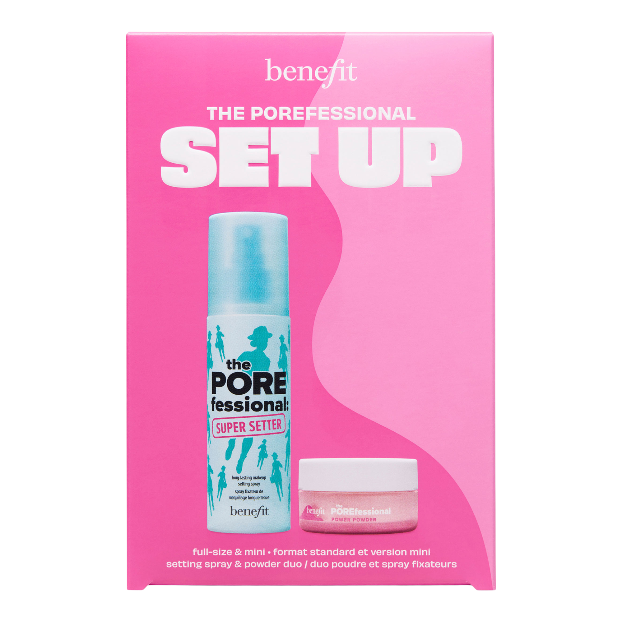 Every POREfessional knows you're not fully set for the day until you lock on your makeup look. Benefit's The POREfessional: Super Setter instantly blurs pores with a weightless mist while The POREfessional Power Powder keeps oil and shine in check with a superfine, silky-soft powder formula.