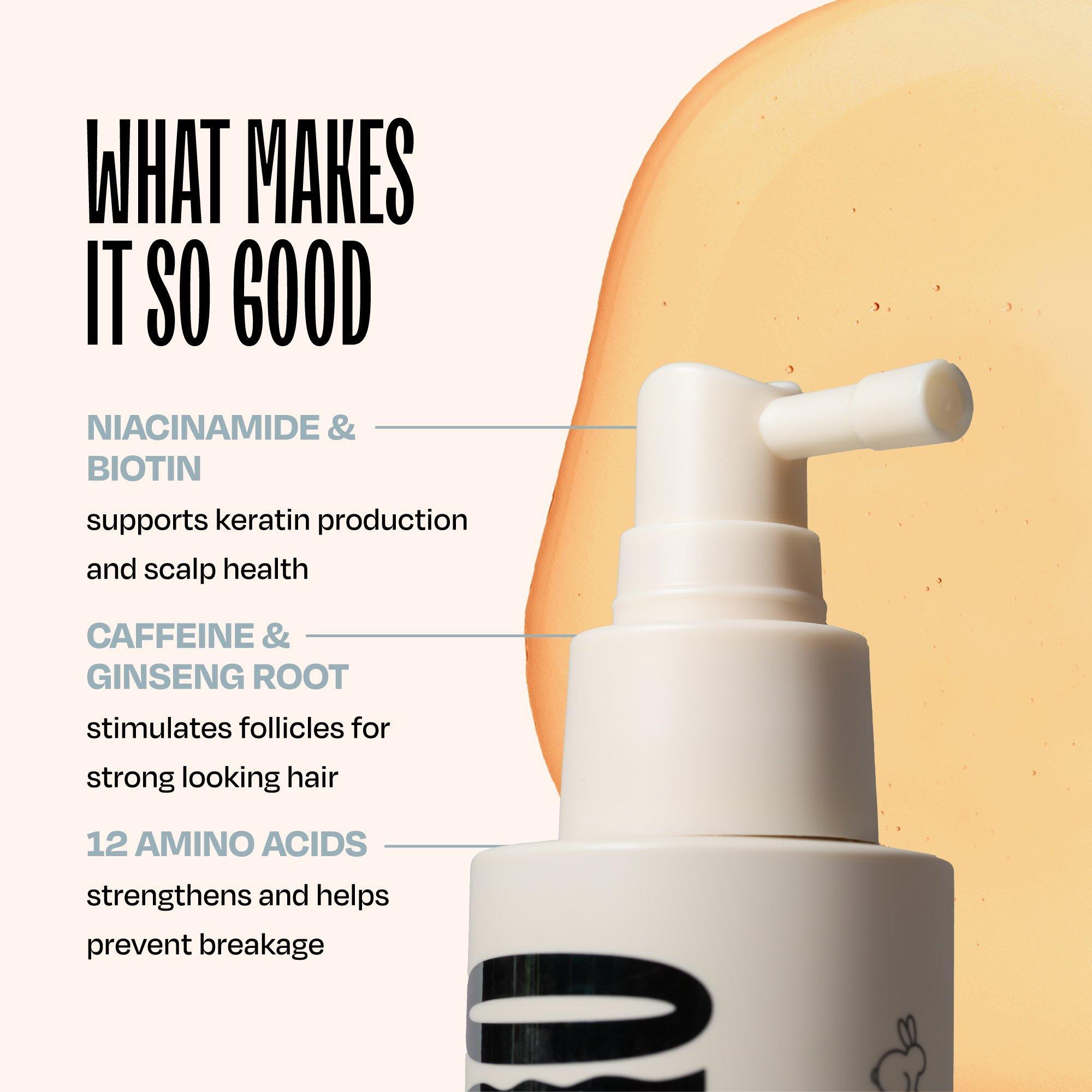 Your healthier scalp & stronger looking hair fix! Our naturally-derived formula helps nourish & soothe your scalp, support healthier hair growth & reduce visible signs of hair breakage, shedding & fallout. Revitalize your hair from root to tip; hair that looks stronger, healthier & more resilient!