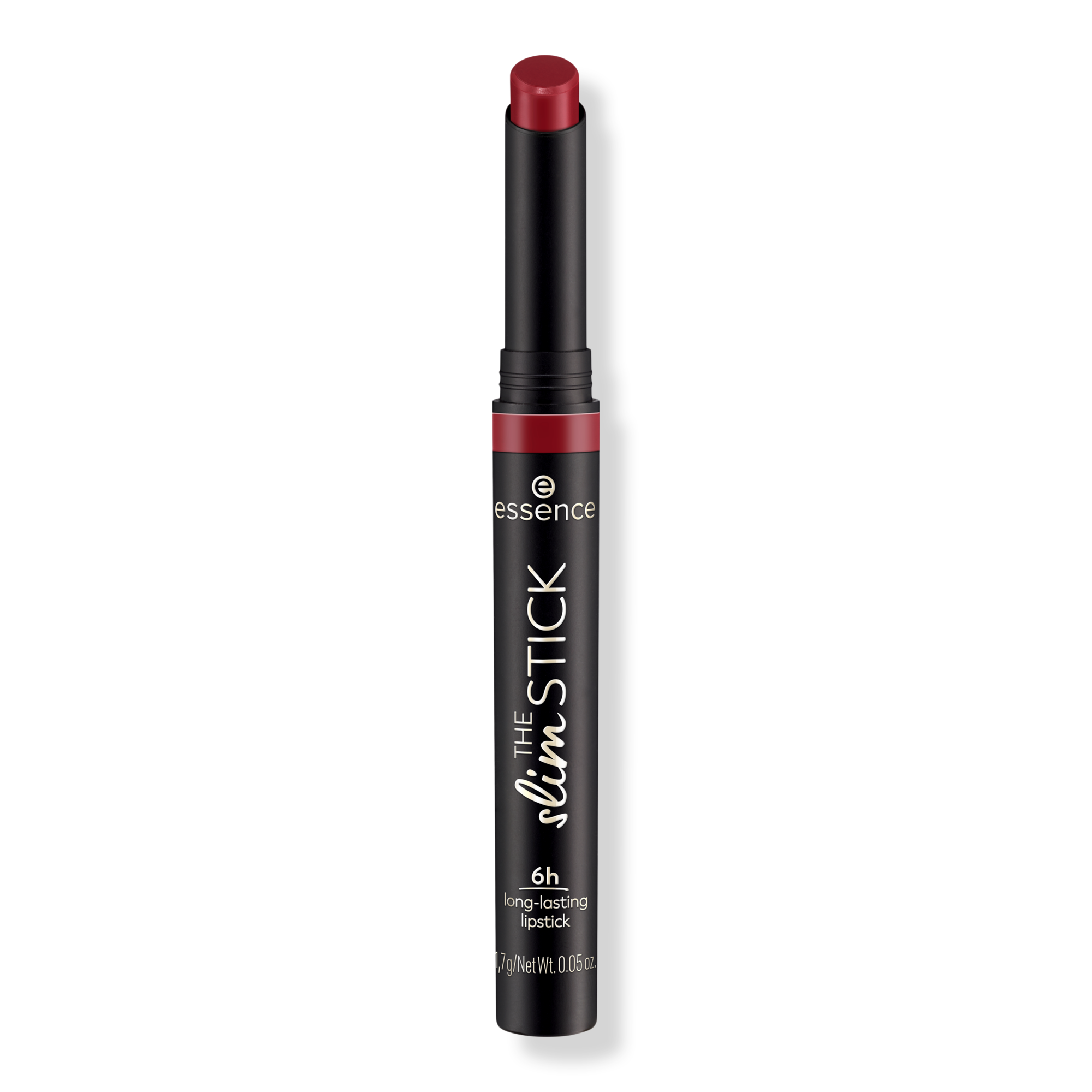 Essence The Slim Stick Lipstick has a creamy texture, matte finish and lasts up to 6 hours without drying out or smudging. The slim packaging is perfect for on-the-go easy application. Enriched with with jojoba oil, macadamia oil, coconut oil and vitamin E.