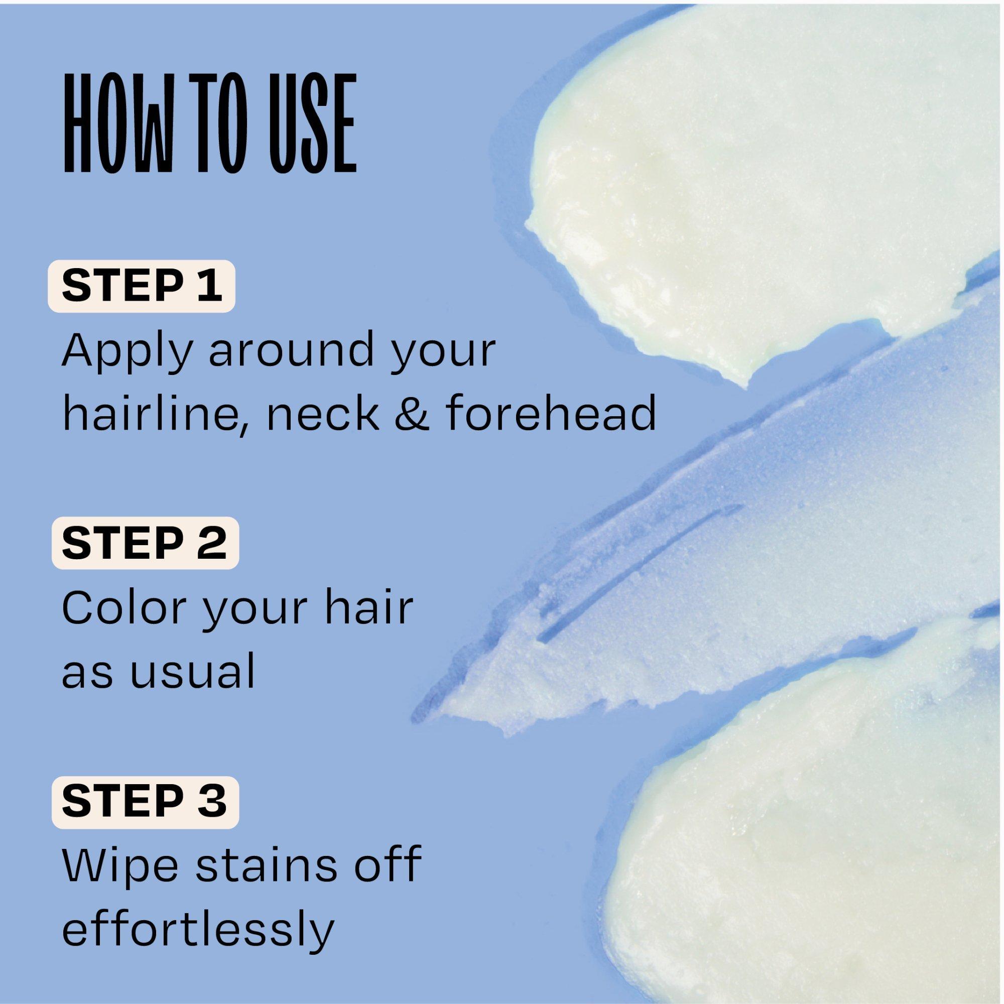Before applying hair color, glide generously along your hairline, ears, forehead, and neck – anywhere prone to color stains. Apply directly from the stick—no mess, no fuss, just easy application! Apply directly from the stick, no mess or fuss required! After coloring, simply wipe away any stained areas with a cloth or cotton pad. Rub any unstained areas into your skin for a boost of hydration.