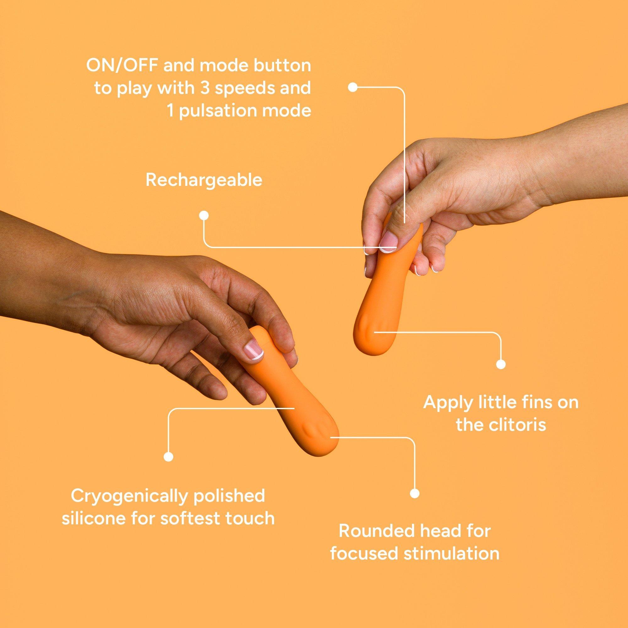 Tip #1: Apply the little fins of its rounded head on the clitoris, and go gradually from the lowest speed to the highest and then pulsation mode.