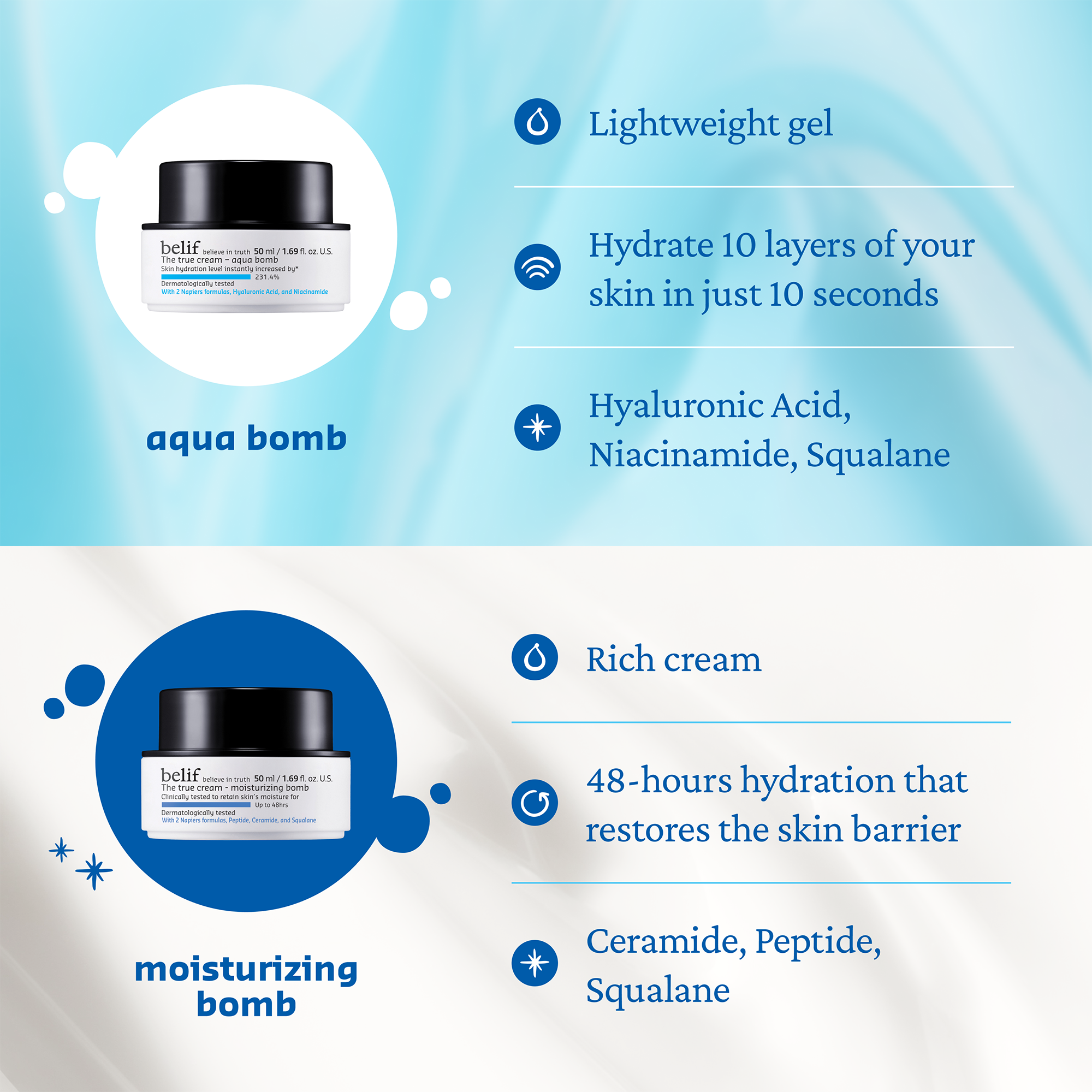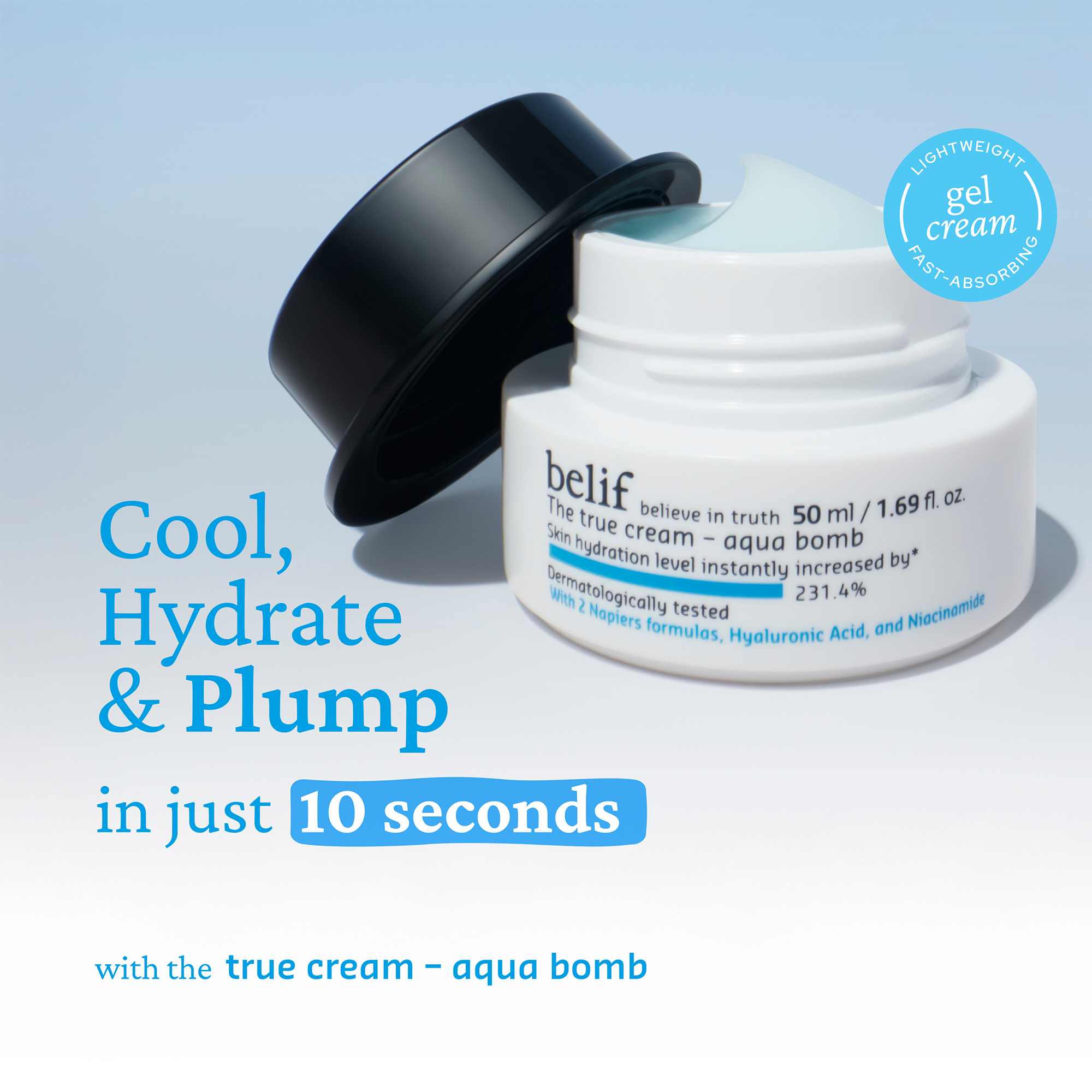 • A lightweight, fast-absorbing gel moisturizer that's formulated with two Napiers formulas, Hyaluronic Acid, and Niacinamide to deliver deep and fast hydration to 10 layers of the skin in just 10 seconds of application*