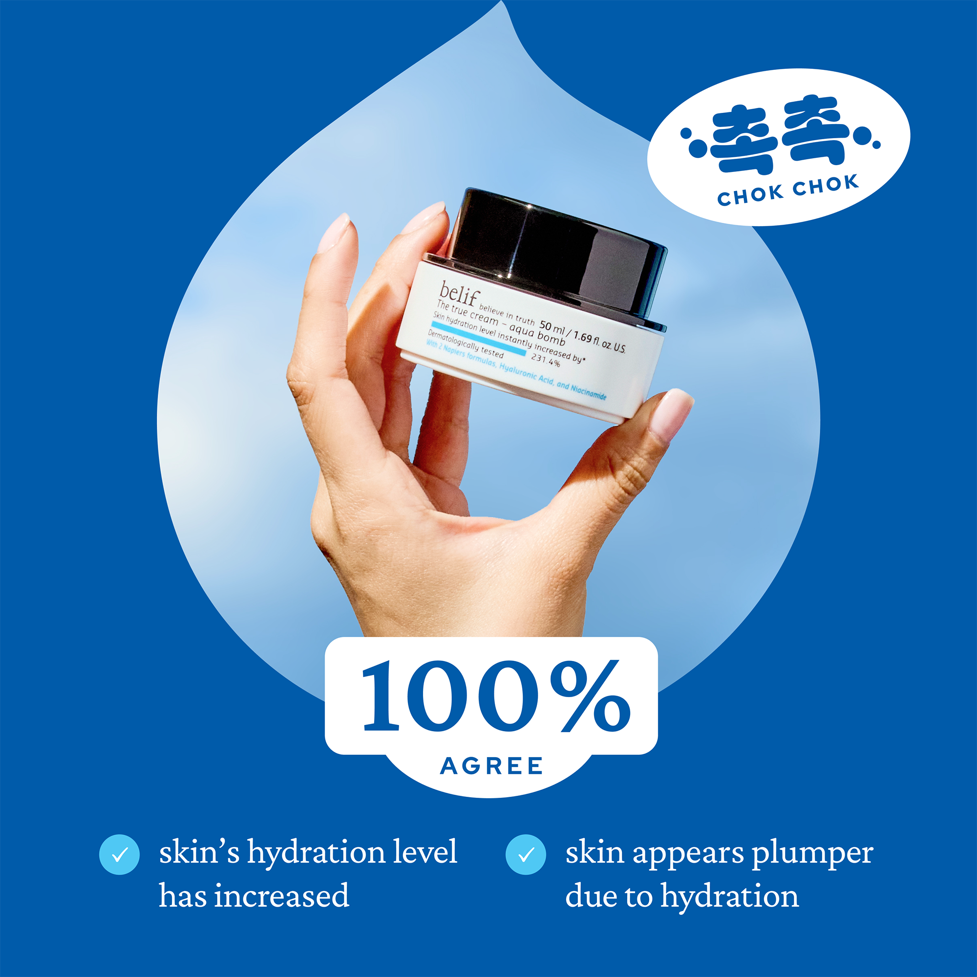 • 100% agreed that it feels like skin's hydration level has increased***