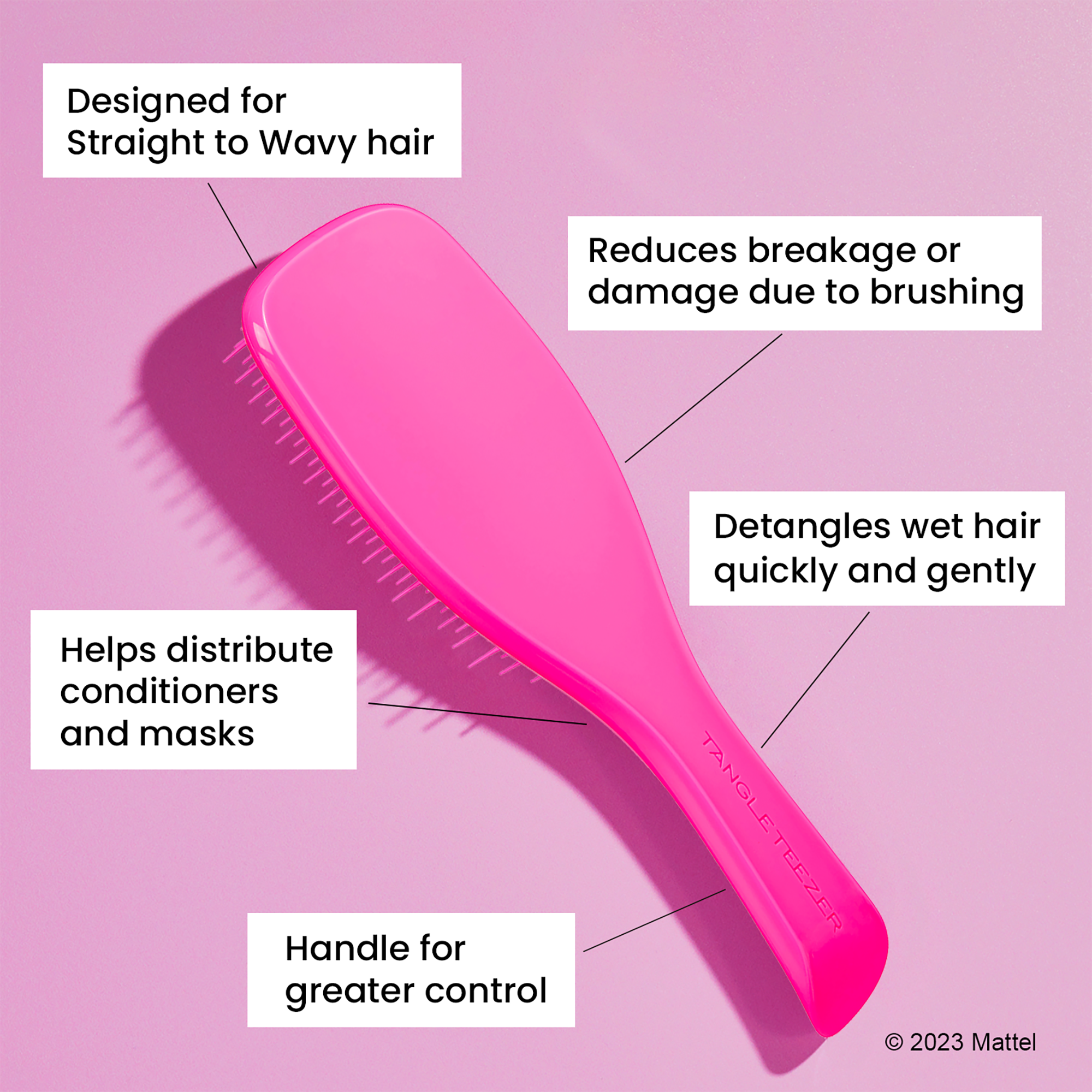 The bestselling Ultimate Detangler from Tangle Teezer, engineered for Fine & Fragile hair. The same winning features, but with soft-flex two-tiered teeth that are a grade softer than the original Ultimate Detangler, it was created with fine, fragile, heat-damaged or color-treated hair in mind.