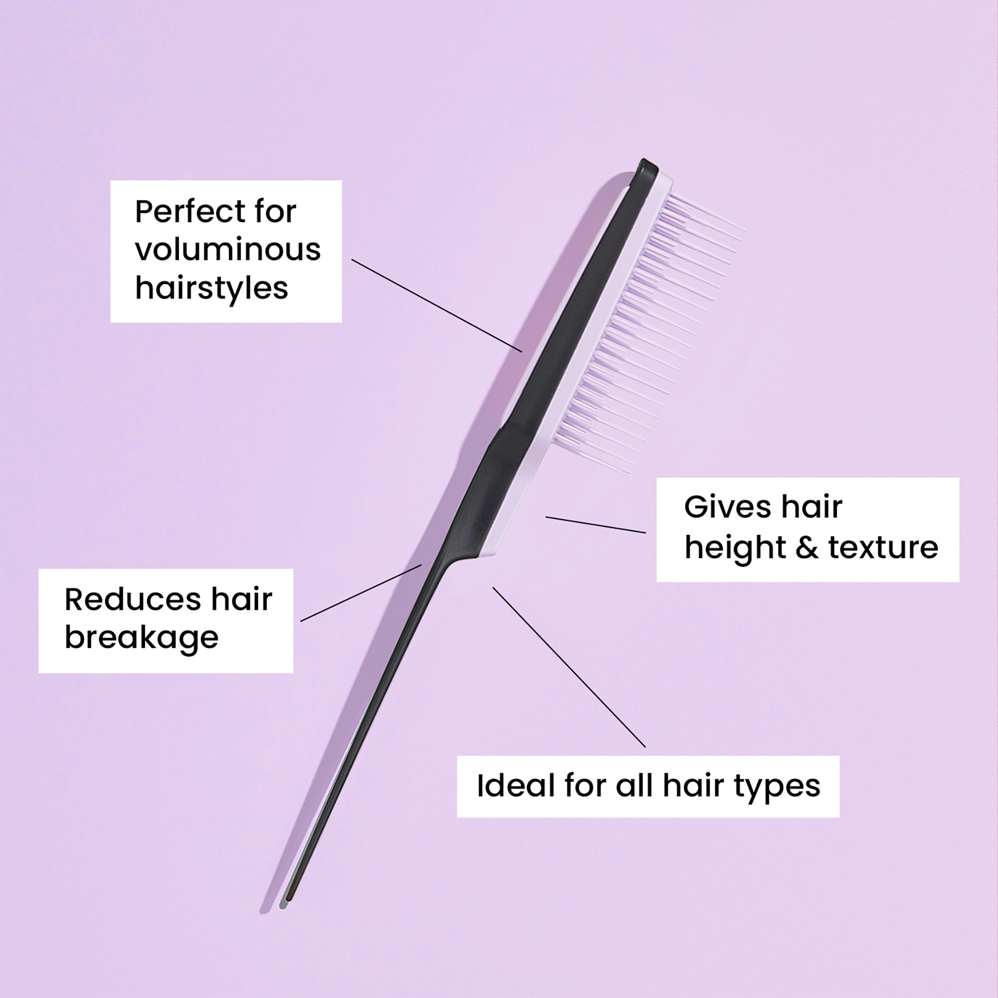 Once the hair is teased, smooth over any fly-aways with the tips of the longer teeth.