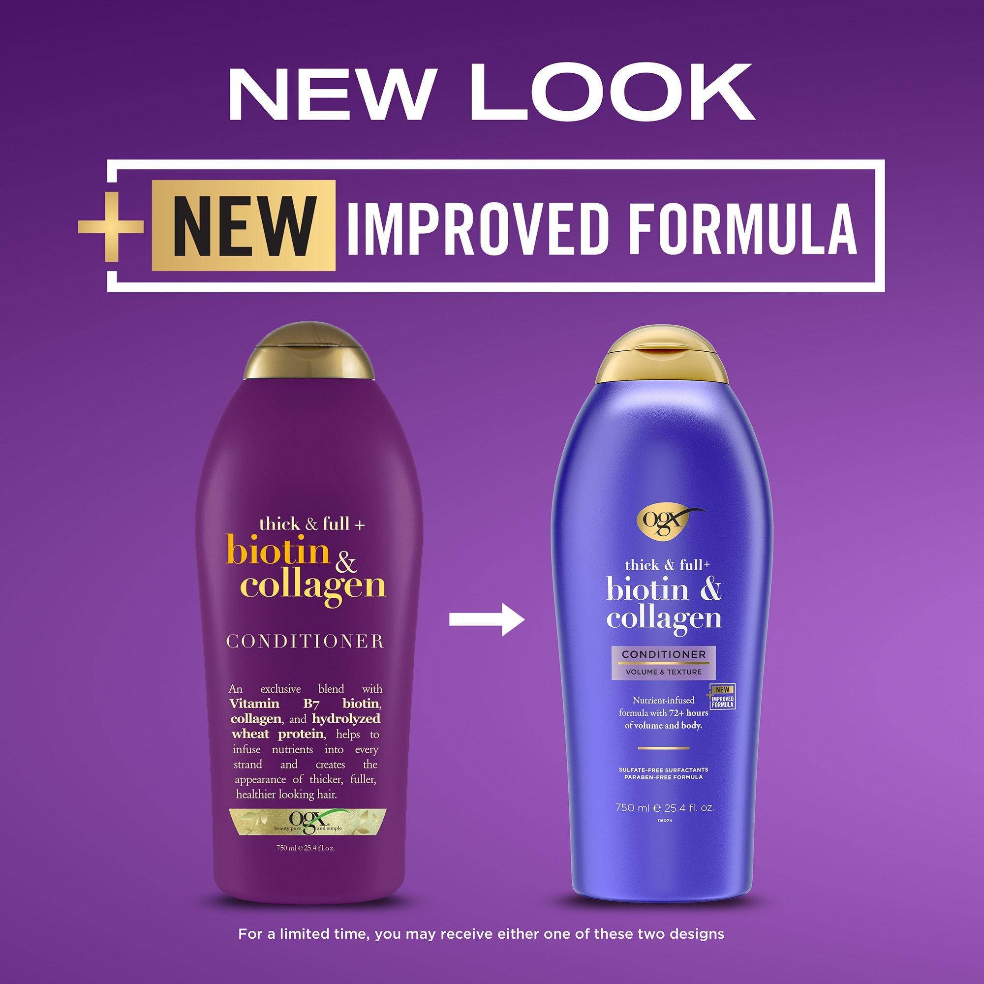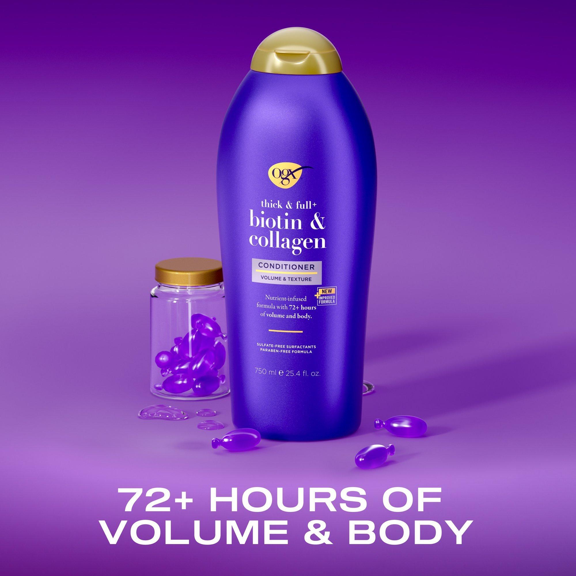 Get 72+ hours of volume & body with OGX Thick & Full + Biotin & Collagen Volumizing Conditioner.