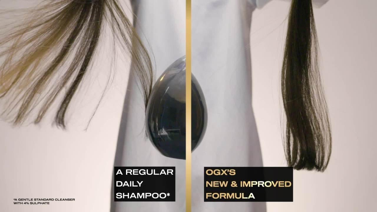 Apply shampoo generously to wet hair, massage into a lather through to ends, then rinse the hair thoroughly. After shampooing, follow with conditioner. For best results use in conjunction with other OGX products.