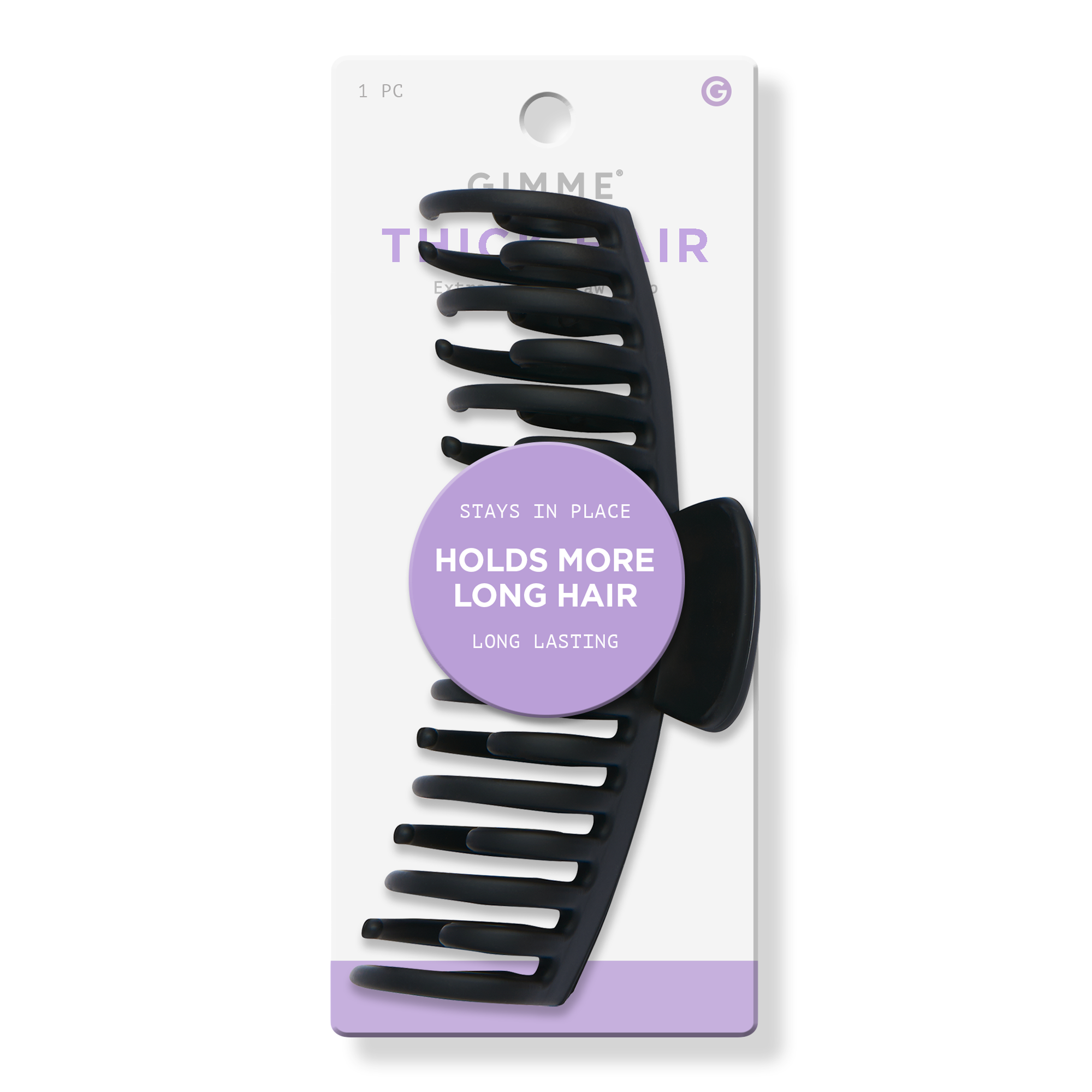 GIMME's Extra-Large Double Teeth Claw Clip is designed for all hair types, especially thick and long hair. Through extensive research, GIMME identified a common struggle among women: finding a claw clip that securely holds all their hair. This clip has extra teeth to prevent hair from slipping.