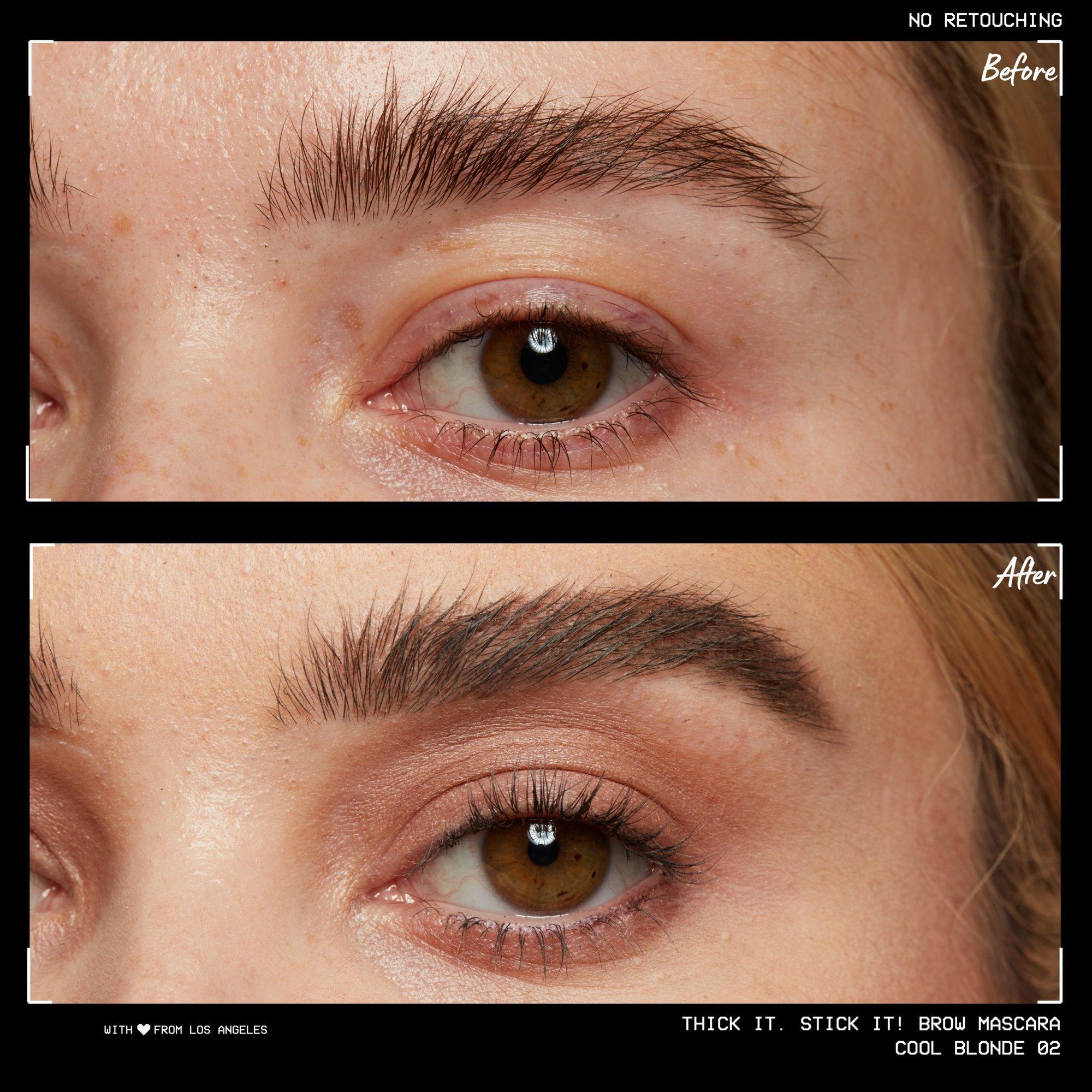 Brush brows upwards and in the direction of hair growth to tame and define your brow shape. Easily customize your look with the tapered brush to blend and build tint and fullness. Add more coats to take your brows from thick to thicker to thickest! For extra full dimension, begin by brushing backward from the tail end of your brows inward, then brush through brows like usual.