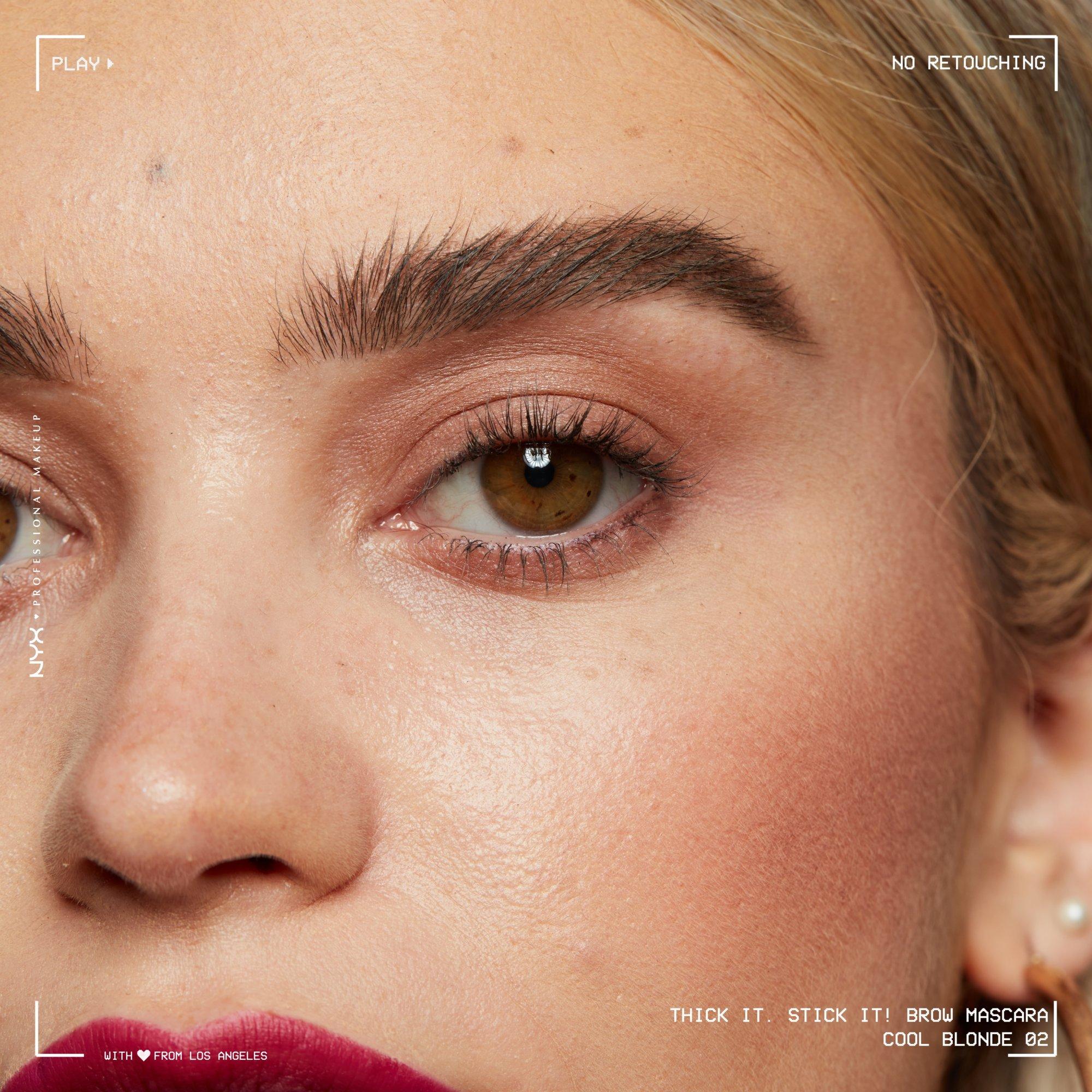 Instantly tame and style your brows with NYX Professional Makeup Thick it Stick it Brow Gel! Go from thicker to thickest with one easy swipe!