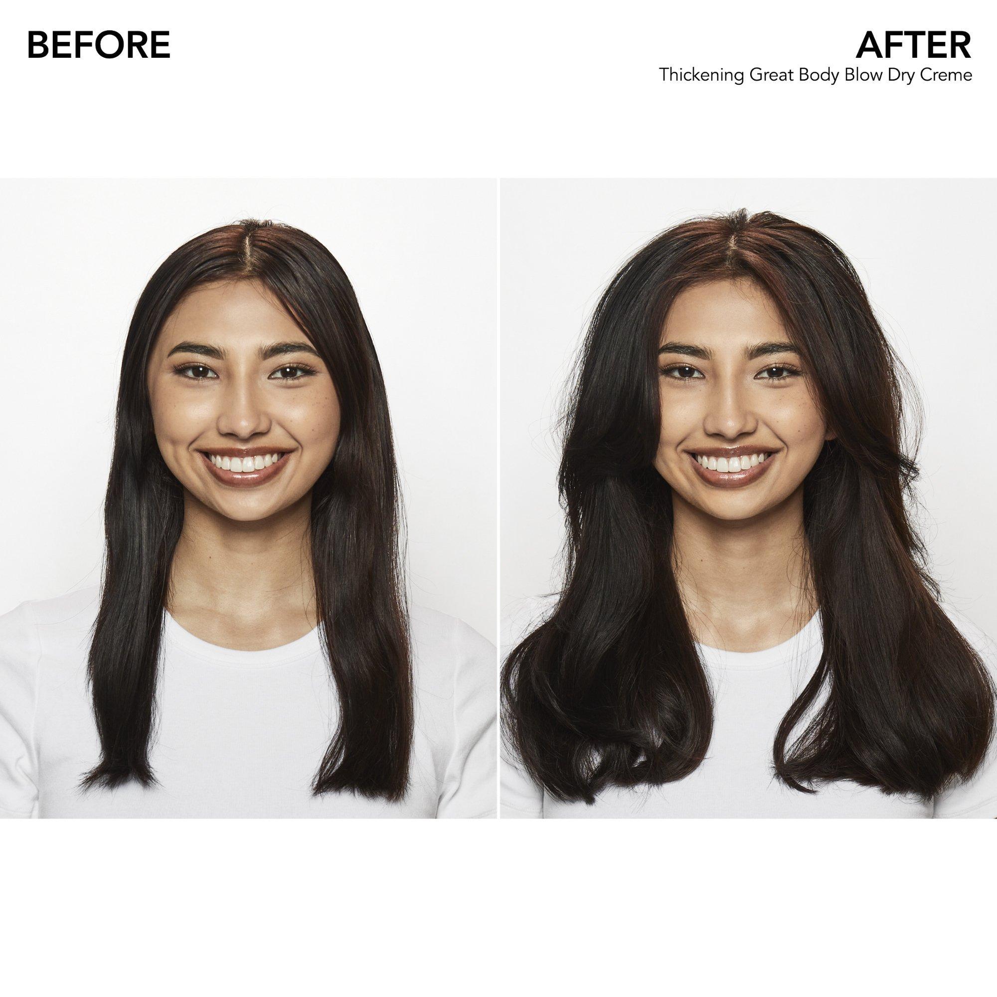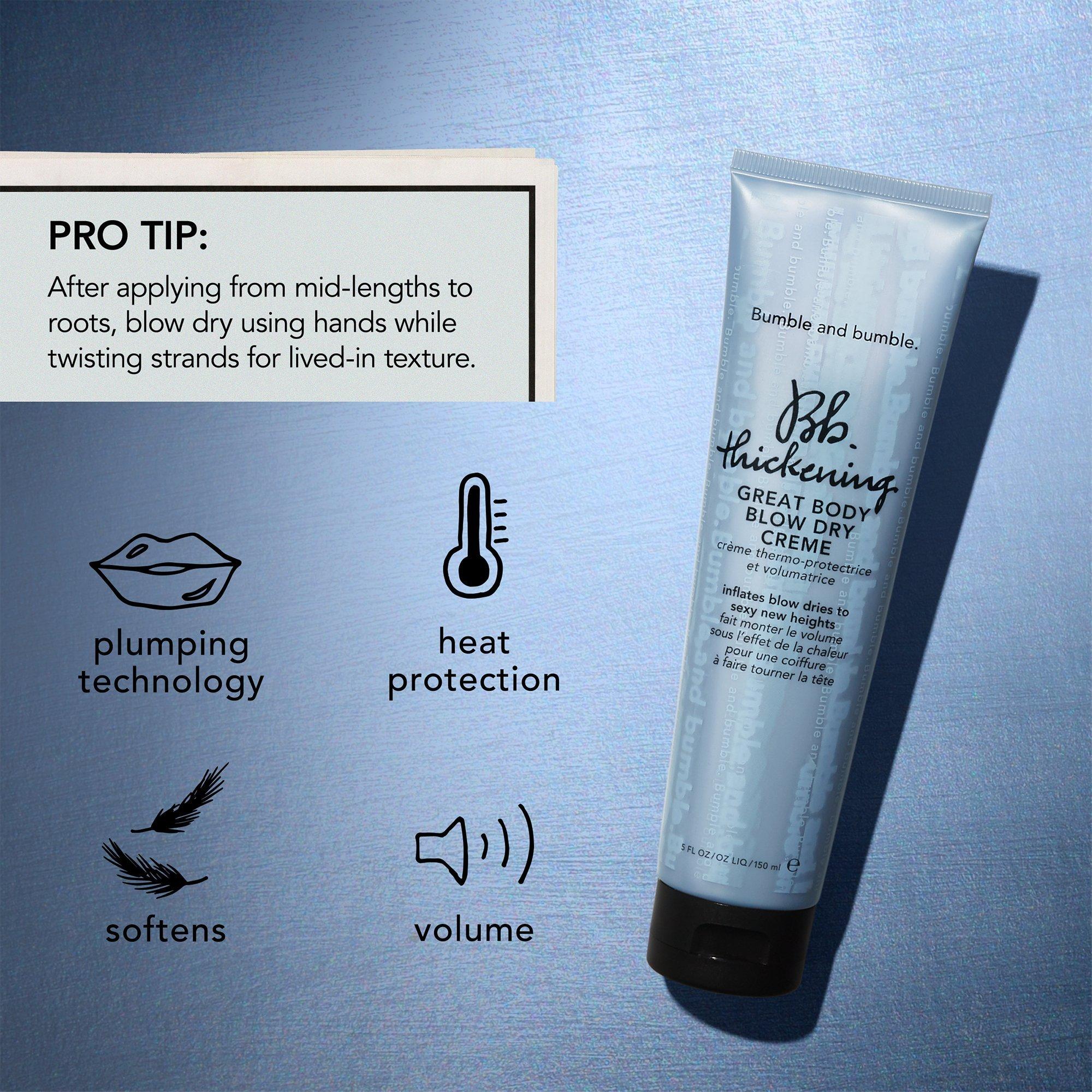 Bumble and bumble's Thickening Great Body Blow Dry Cream is a hair thickening heat protectant blow dry cream thickens and plumps each strand to luscious new heights.