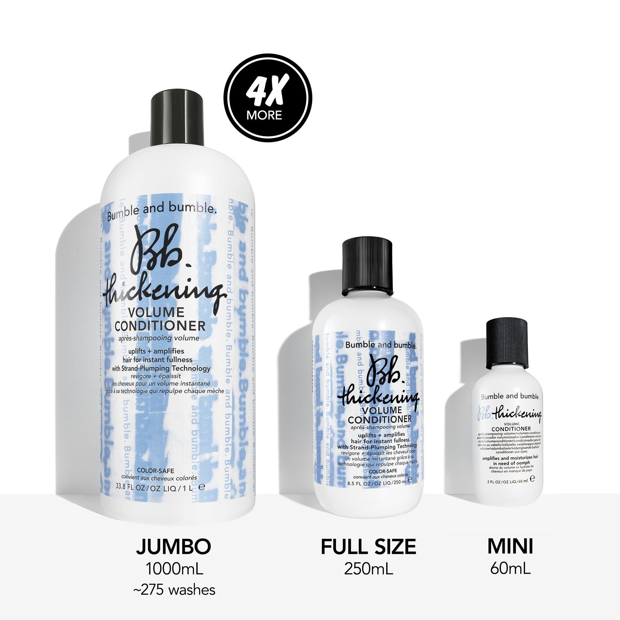 Bumble and bumble's Thickening Volume Conditioner is a lightweight hair thickening conditioner that instantly plumps each strand from roots to ends for a thicker, fuller look. New formula, same name - now with even more strand-plumping ingredients.