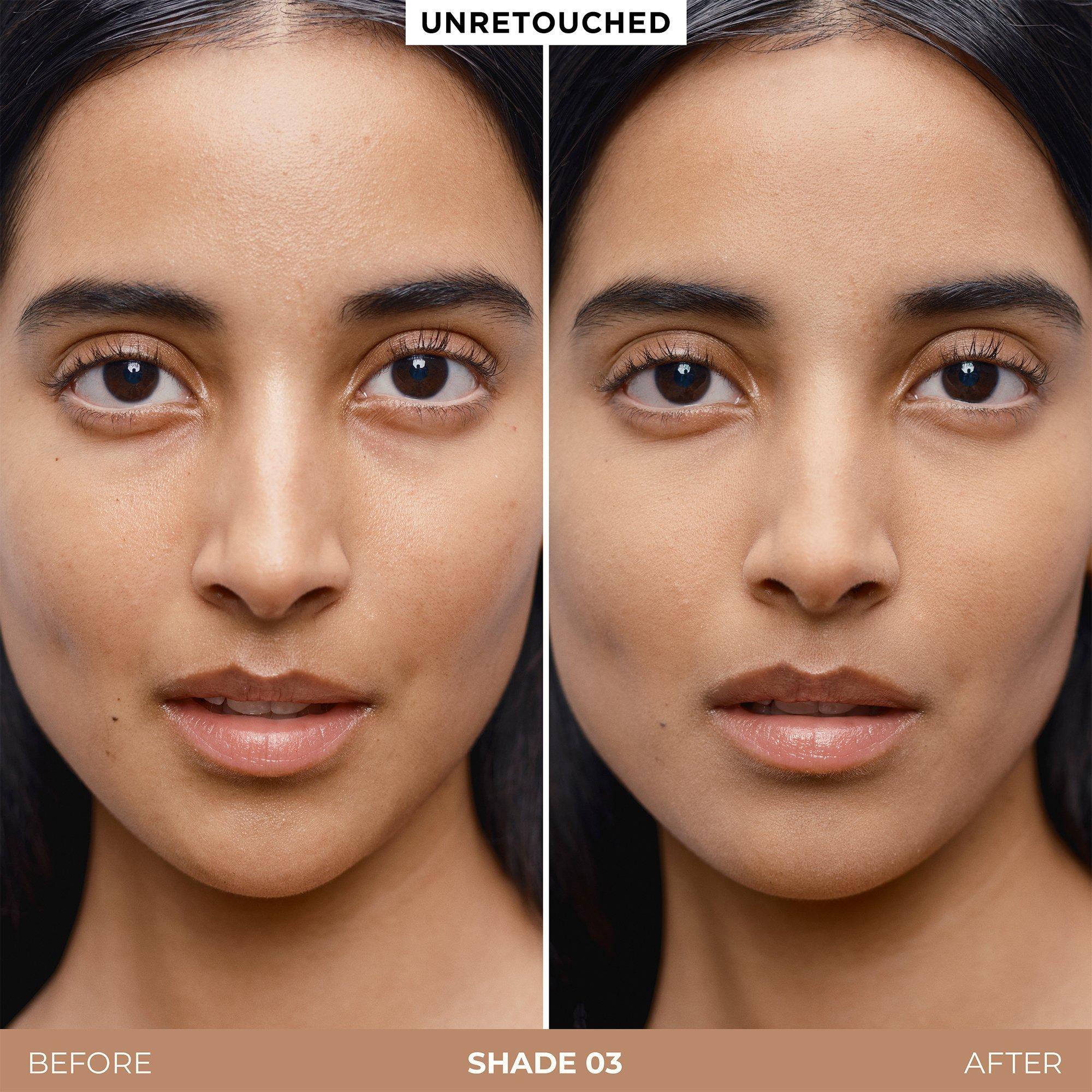 Use a dense face brush (like the Real Flawless Foundation Brush) or a sponge for a buildable, diffused tint.