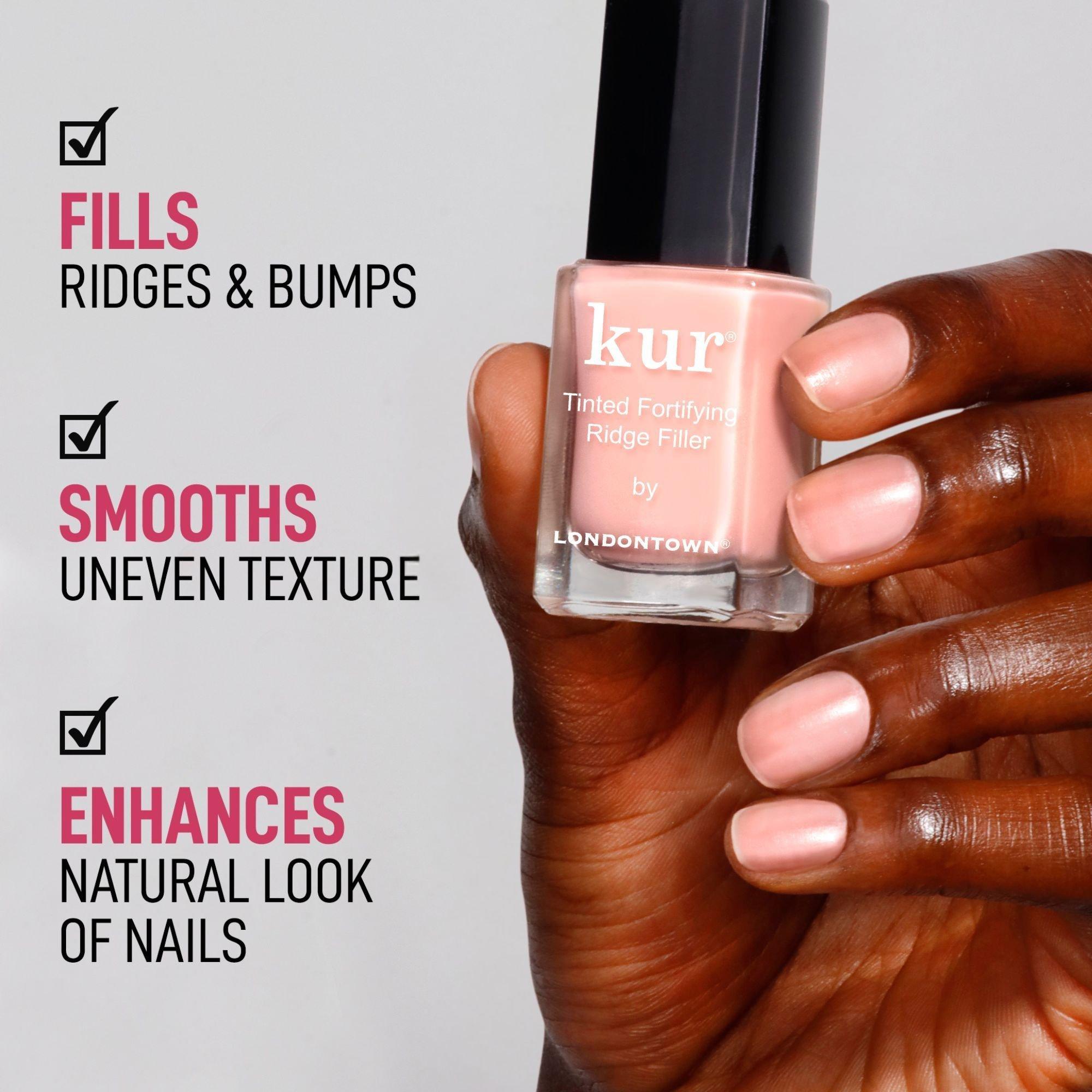 Londontown’s all-in-one Tinted Ridge Filler acts as a base coat and nail strengthener. The ultimate smoothing primer for bumpy nails, instantly filling in uneven texture to create a smoother surface. A kiss of tint further enhances the look of natural nails to create a more uniform look.