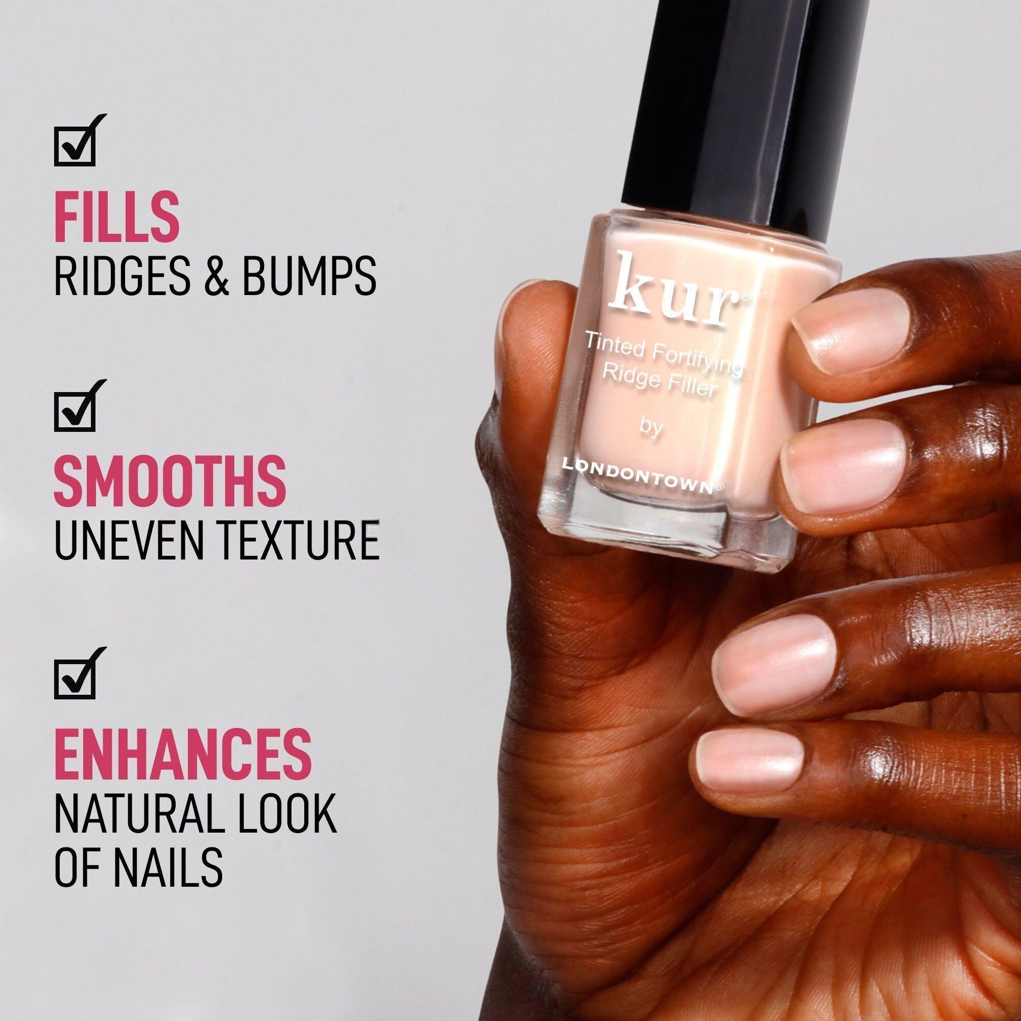 Londontown’s all-in-one Tinted Ridge Filler acts as a base coat and nail strengthener. The ultimate smoothing primer for bumpy nails, instantly filling in uneven texture to create a smoother surface. A kiss of tint further enhances the look of natural nails to create a more uniform look.
