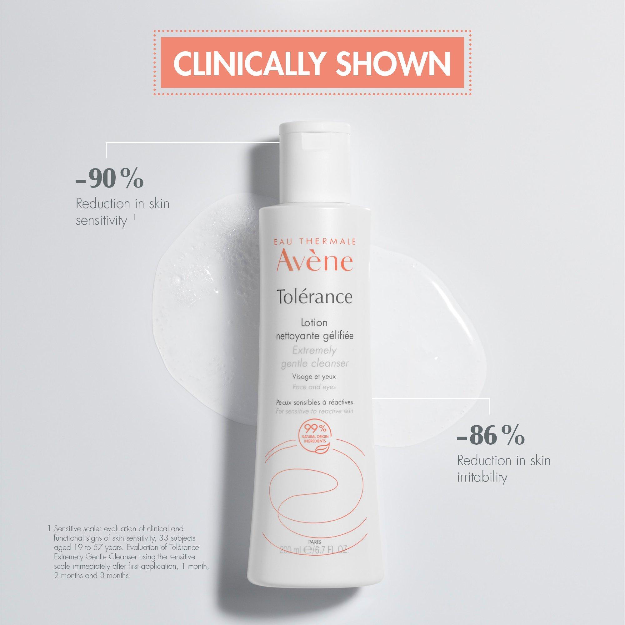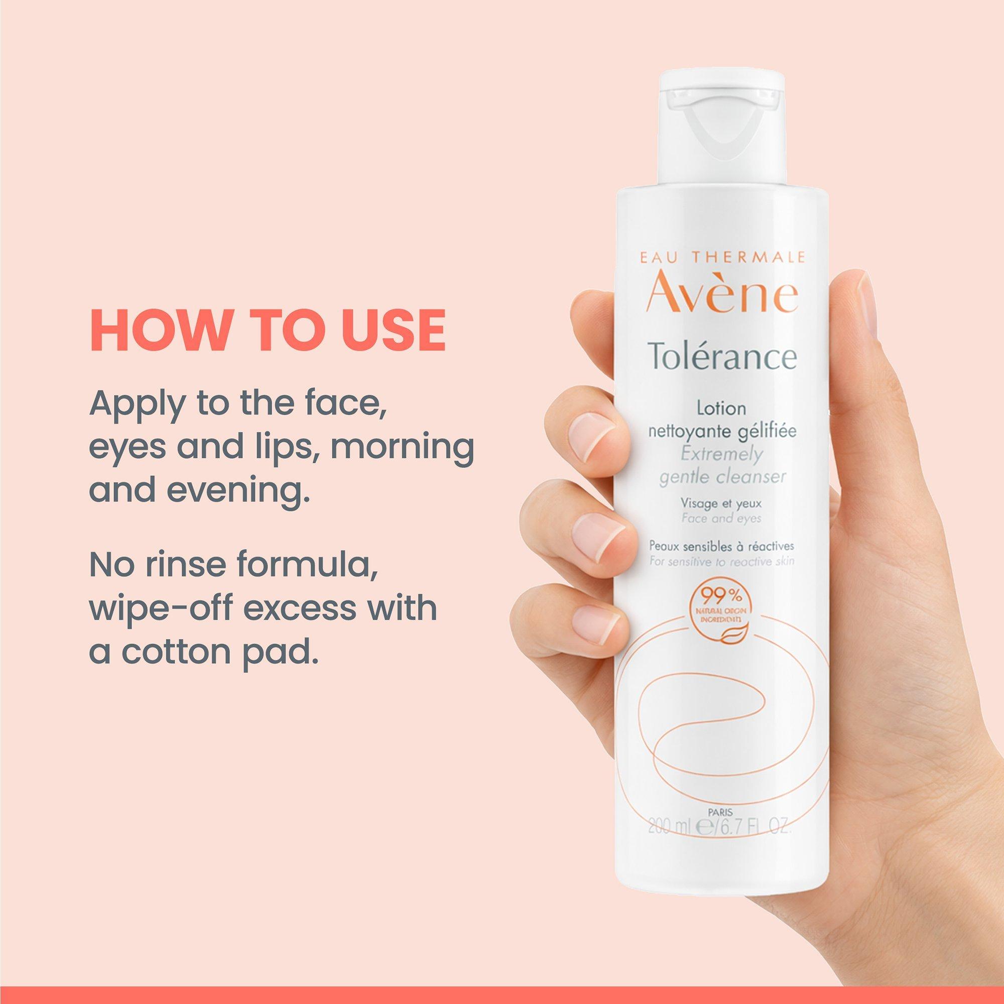 Avène's Tolerance Extremely Gentle Cleanser Lotion is a no-rinse, wipe-off formula helps restore skin barrier while protecting from dryness. Helps soothe skin discomfort, including tingling, burning sensations and tightness. Safe for face and eyes.