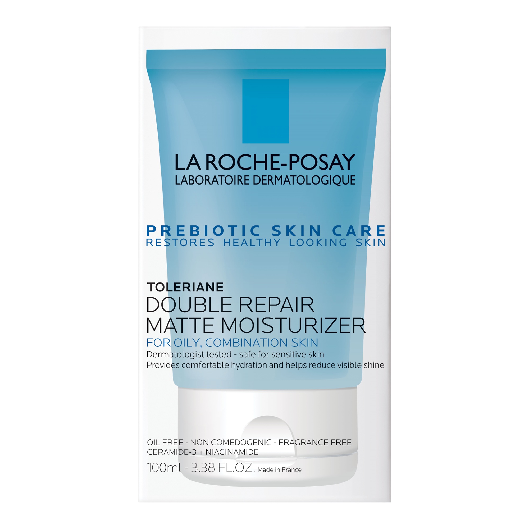 La Roche-Posay Toleriane Double Repair Matte Face Moisturizer is a daily oil-free, non-comedogenic face moisturizer for oily skin. This oily skin moisturizer provides all day hydration without the shine and helps to repair the skin barrier after 1-hour.