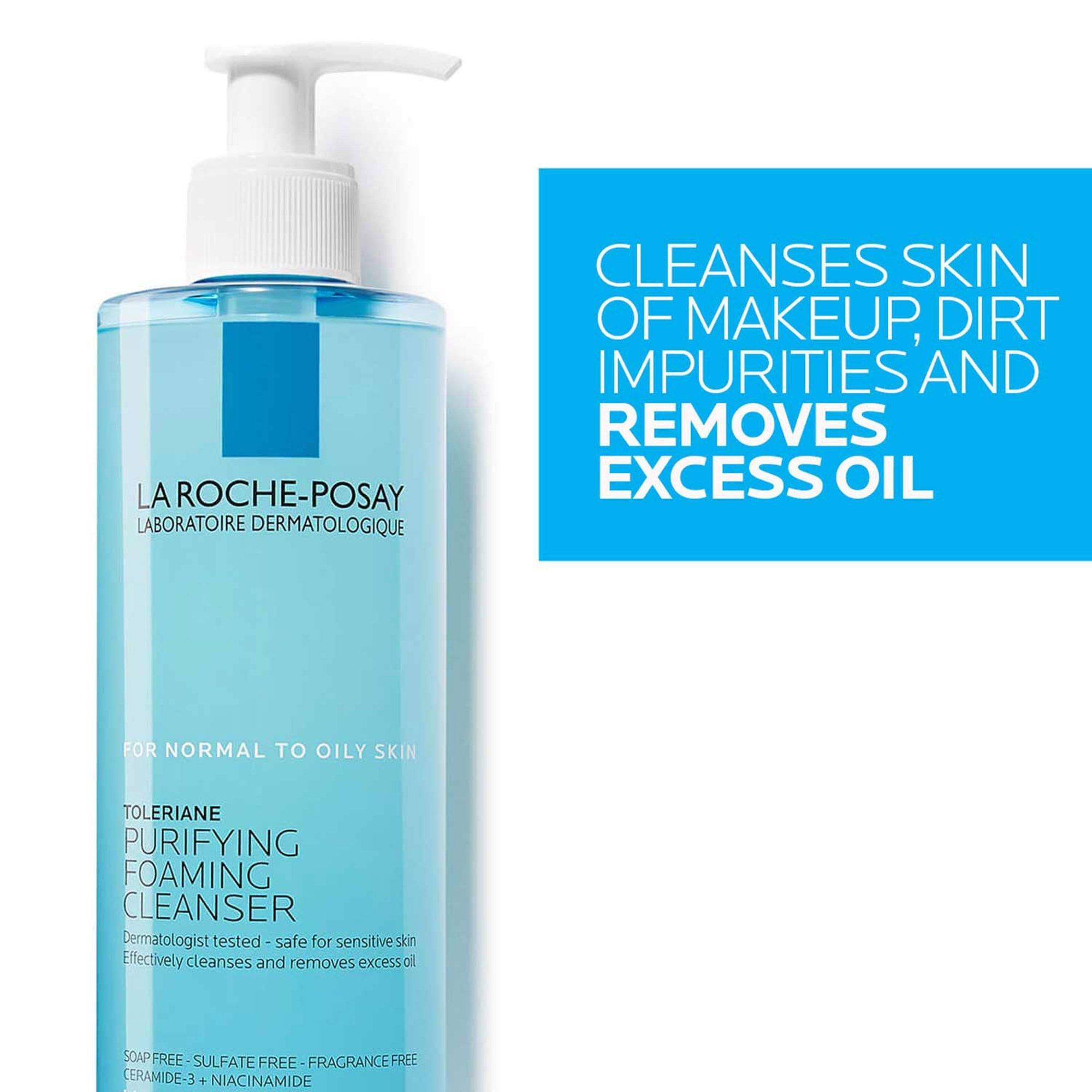 La Roche-Posay Toleriane Purifying Foaming Face Wash for Oily Skin removes dirt, excess oil, and makeup while maintaining the skin barrier.