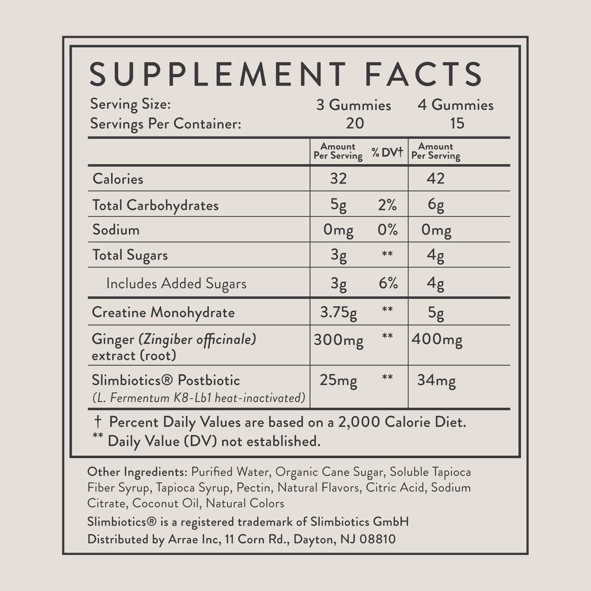 Sculpt, define, and tone with Arrae Tone Creatine Body Composition Gummies. Formulated with clinically-dosed creatine monohydrate, Slimbiotics®, and ginger to support lean muscle and recovery—without the bloat or bulk. Available in Sour Green Apple and Mixed Berry.*