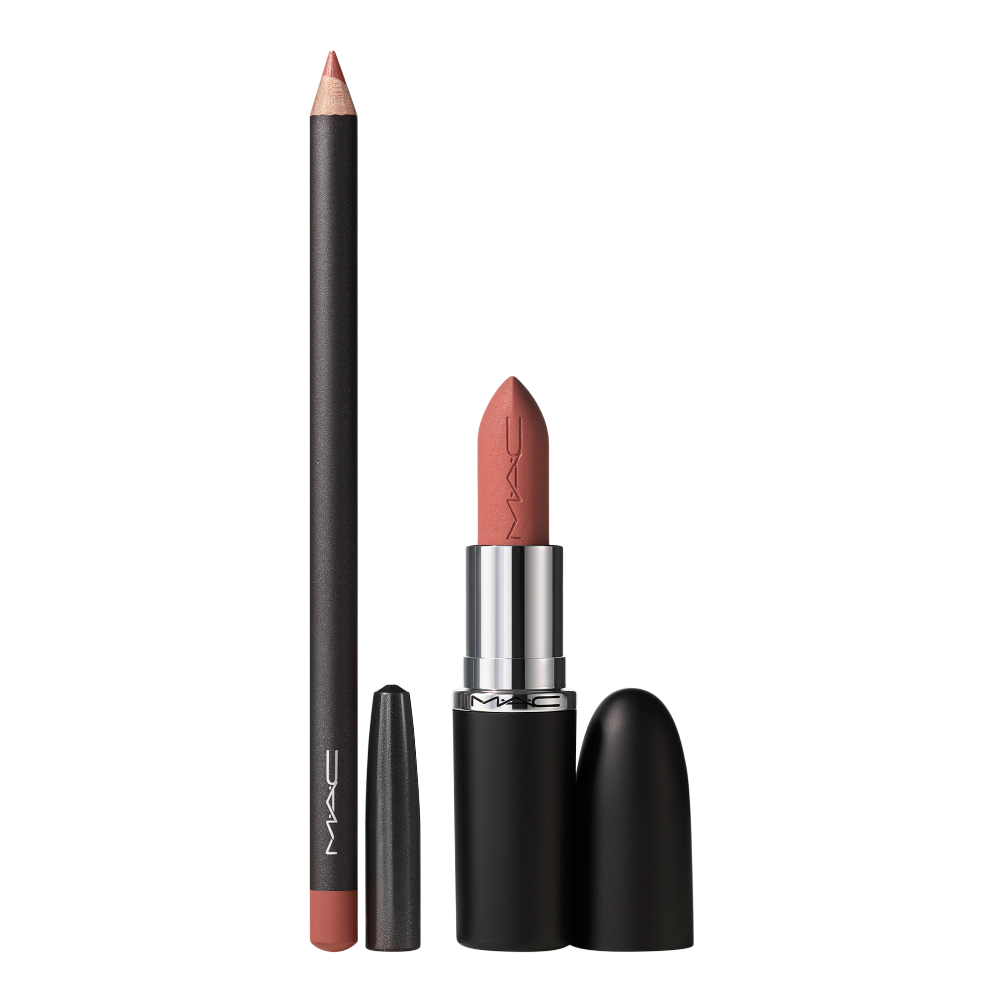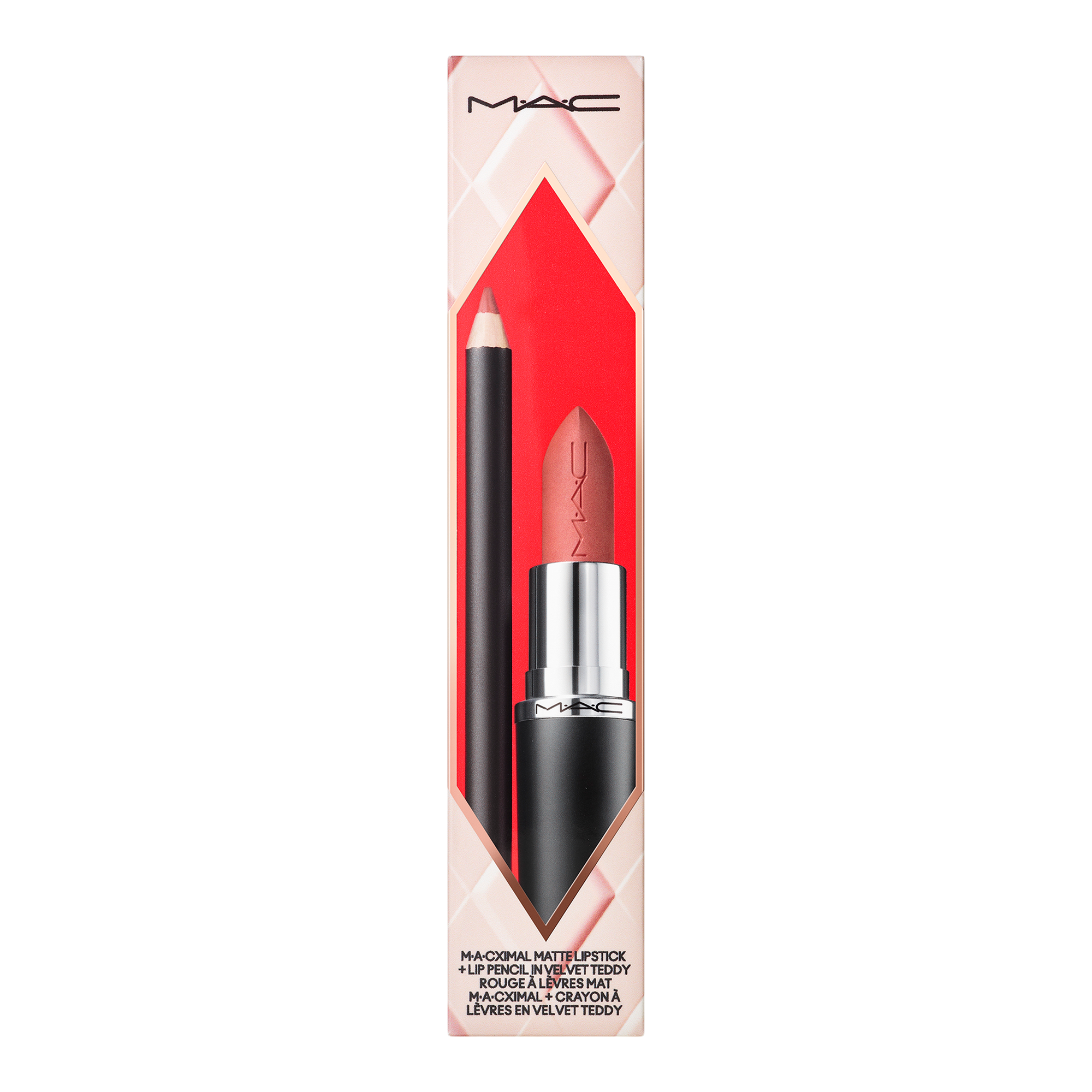 The Topsy-Teddy Matte Lipstick + Lip Liner Gift Set is a holiday-exclusive, giftable nude lip combo featuring best-selling M·A·Cximal Silky Matte Lipstick and Lip Liner Pencil in Velvet Teddy at a M·A·Cnificent value.