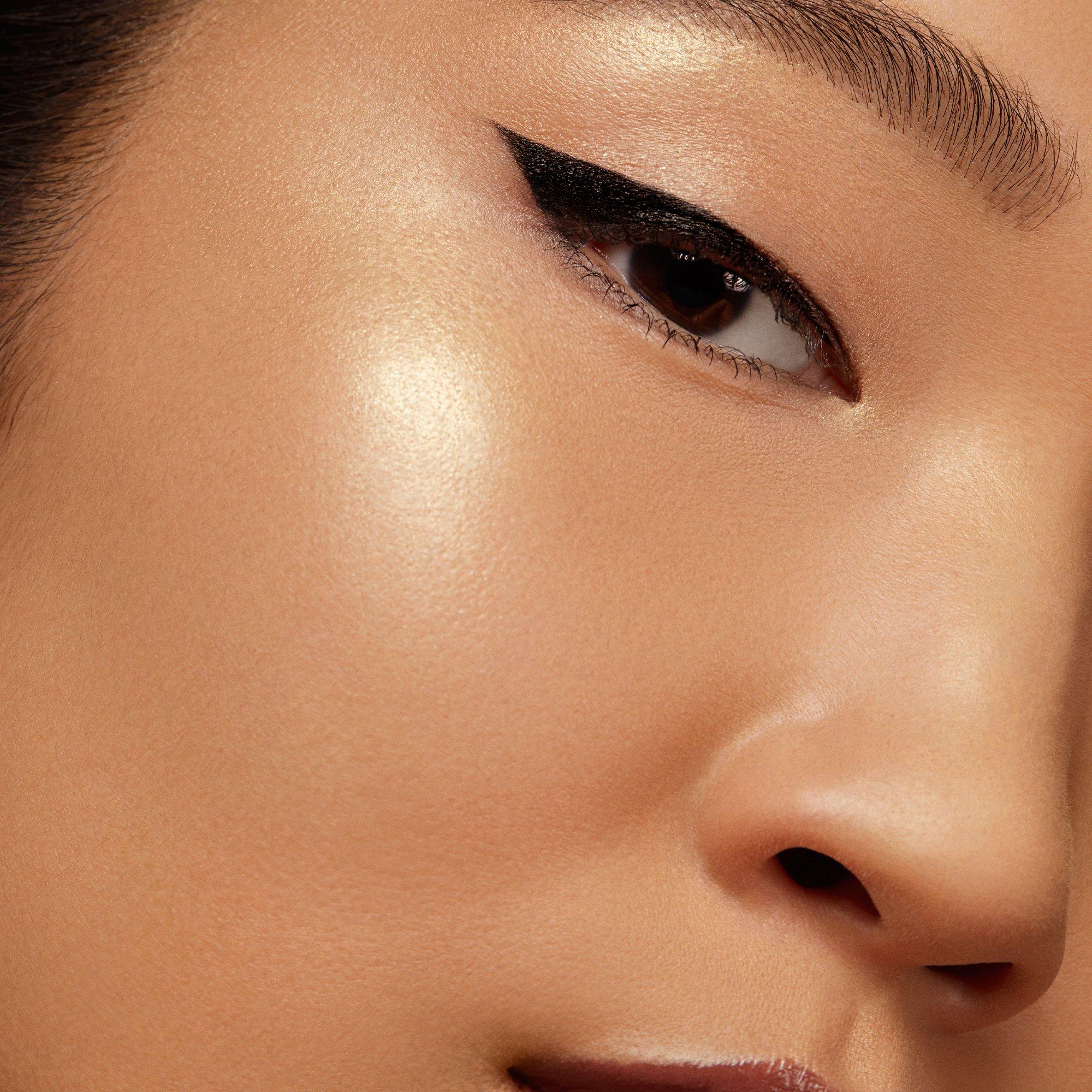 For a sophisticated glow, use your fingers to tap the highlighter onto the high points of your face (tops of your cheekbones, brow bone, around your temples) or on the cupid’s bow. Use one shade alone for a subtle amount of sparkle; use two blended together for a multi-faceted, glimmering effect.
