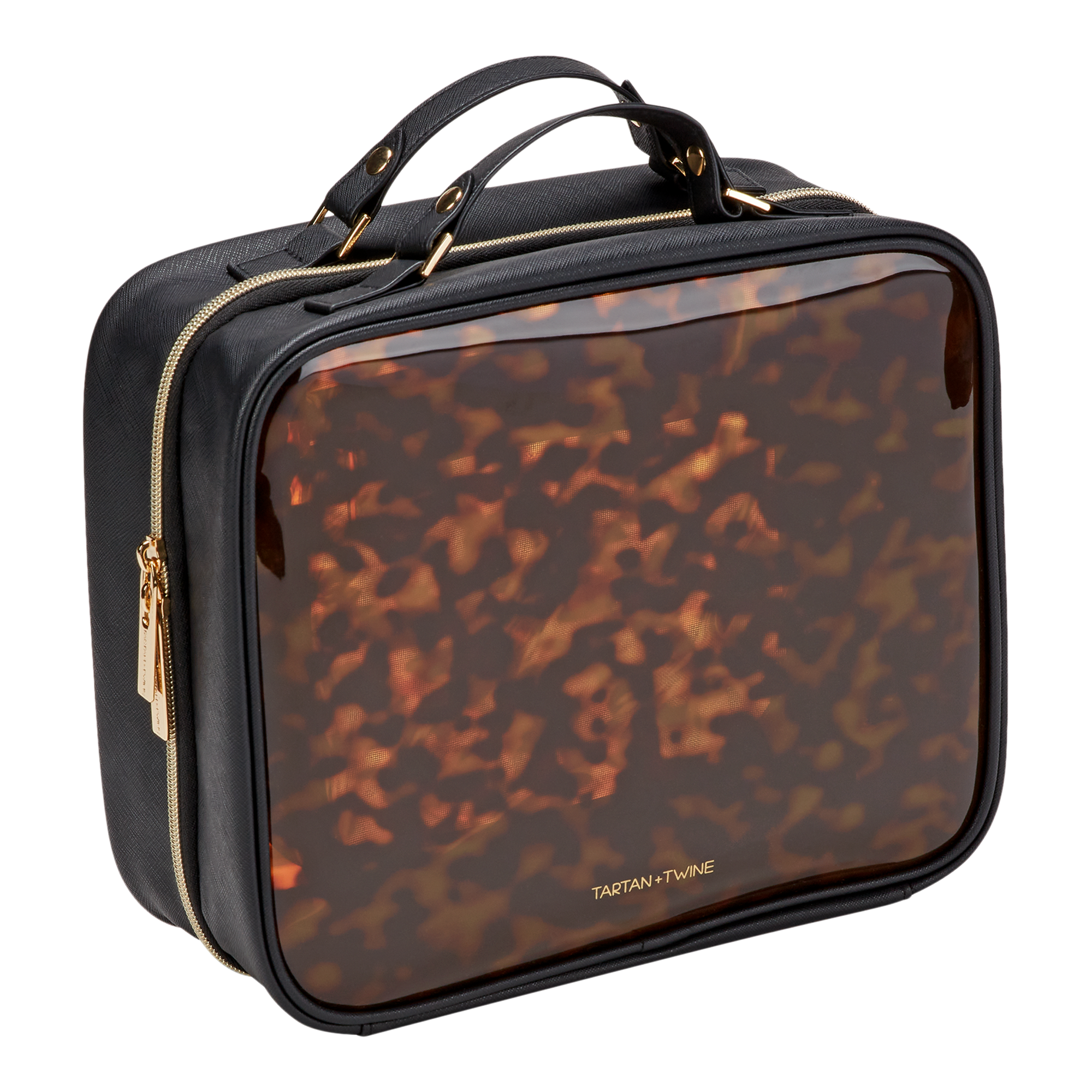 Jet-set in style with the Tartan + Twine Tortoise Deluxe Weekender, featuring tortoise PVC, gold-tone hardware, and compartments that keep you organized.