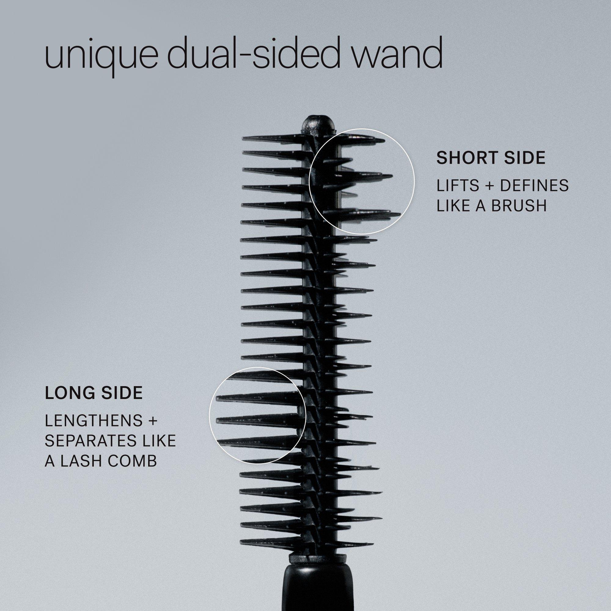 For extra lift, use an eyelash curler before applying. Glide the shorter side of the dual-sided wand through lashes to lift and define. Use the longer, comb-like side to lengthen and separate each lash. Apply more coats for a bolder look. To remove, rinse with warm water - no makeup remover needed.