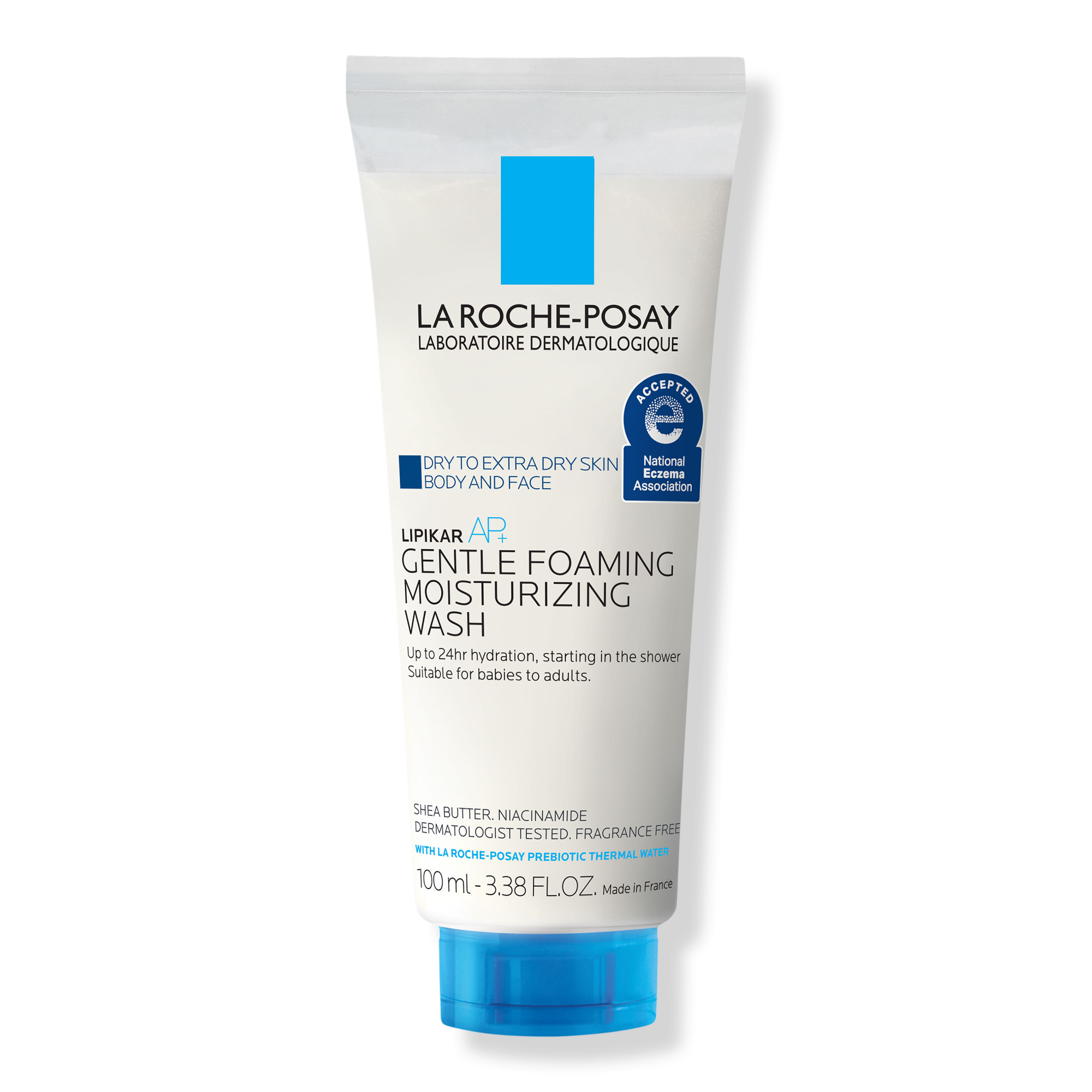 La Roche-Posay Travel Size Lipikar Wash AP+ Gentle Foaming Moisturizing Wash is a hydrating face cleanser and body wash that provides 24-hour hydration for dry skin.
