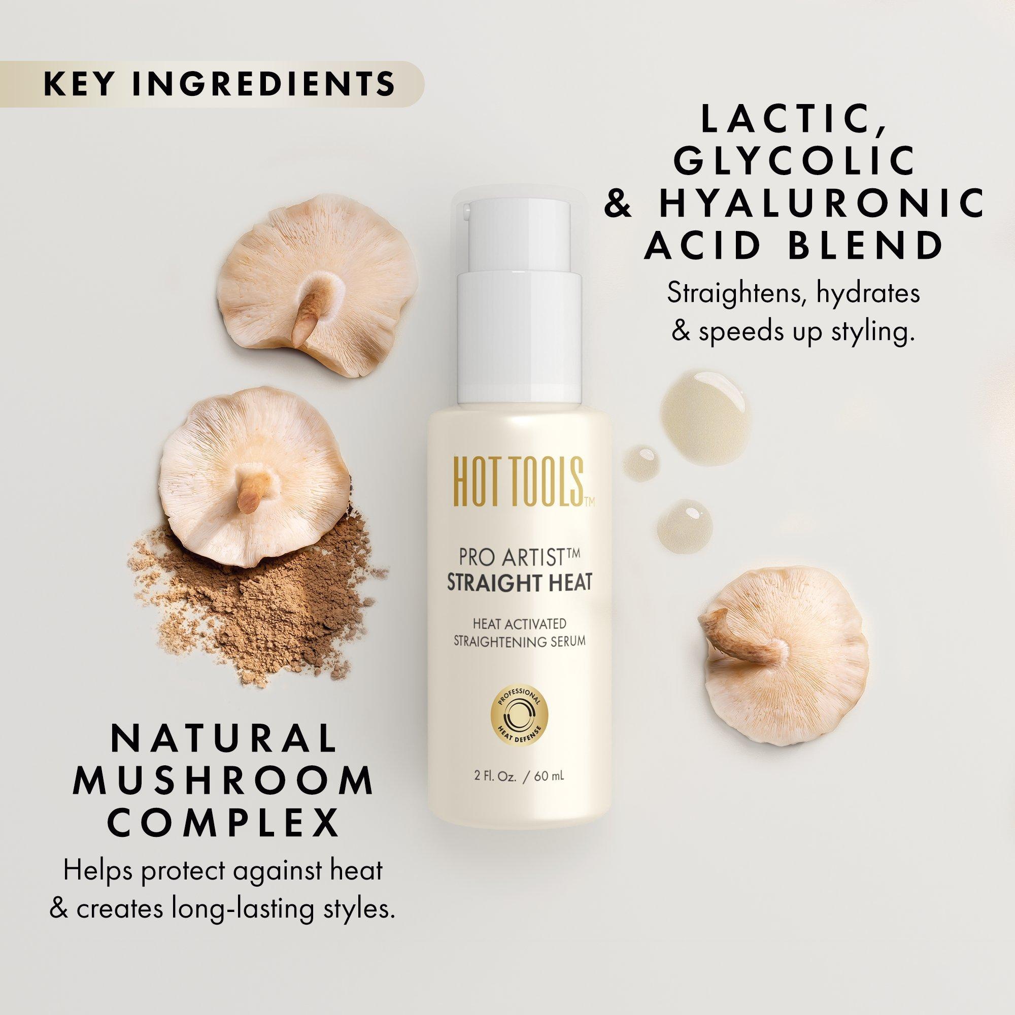 Unlock the power of perfectly straight hair with Pro Artist Straight Heat, Heat Activated Straightening Serum. Hot Tools lightweight formula effortlessly creates sleek, straight styles that last for up to three washes.* *vs. untreated hair