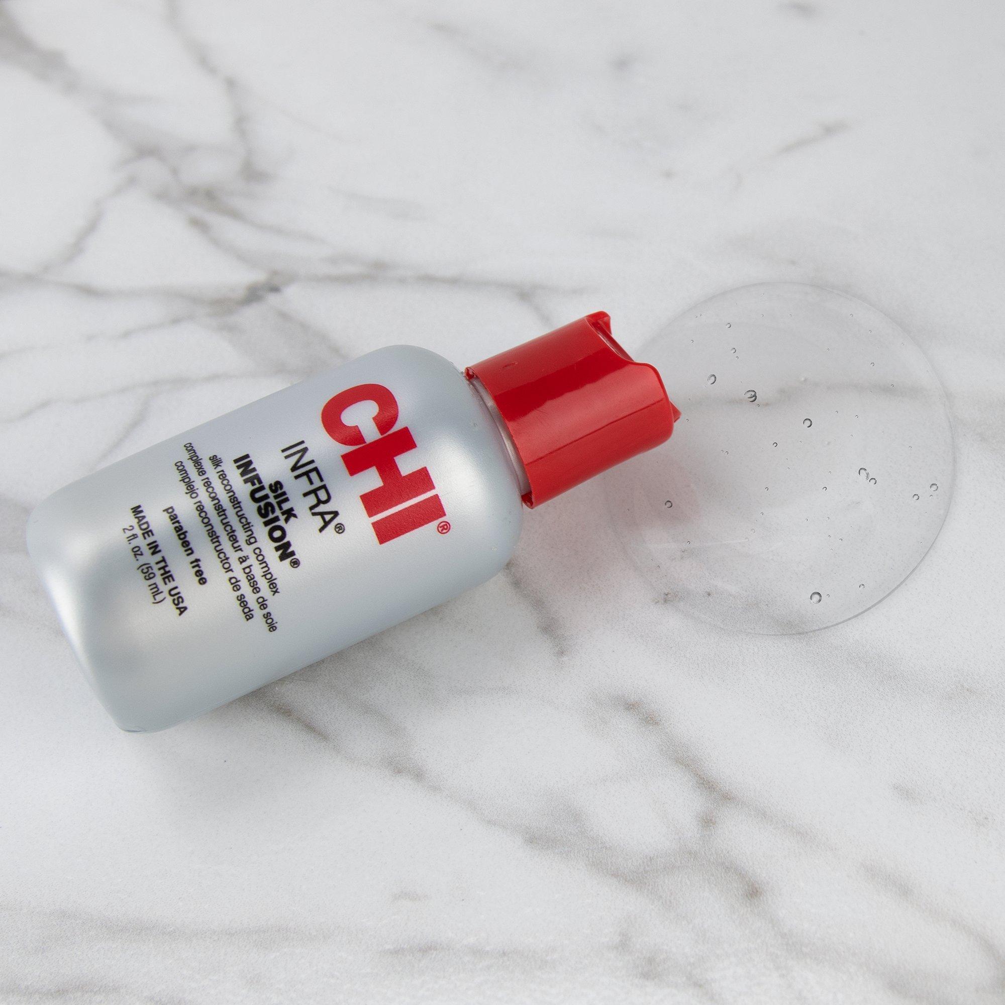 CHI Travel Size Silk Infusion Silk Reconstructing Complex is a rich leave-in treatment enriched with silk, wheat, and soy proteins that will penetrate and help strengthen the hair, providing incredible softness, manageability and shine without build up.