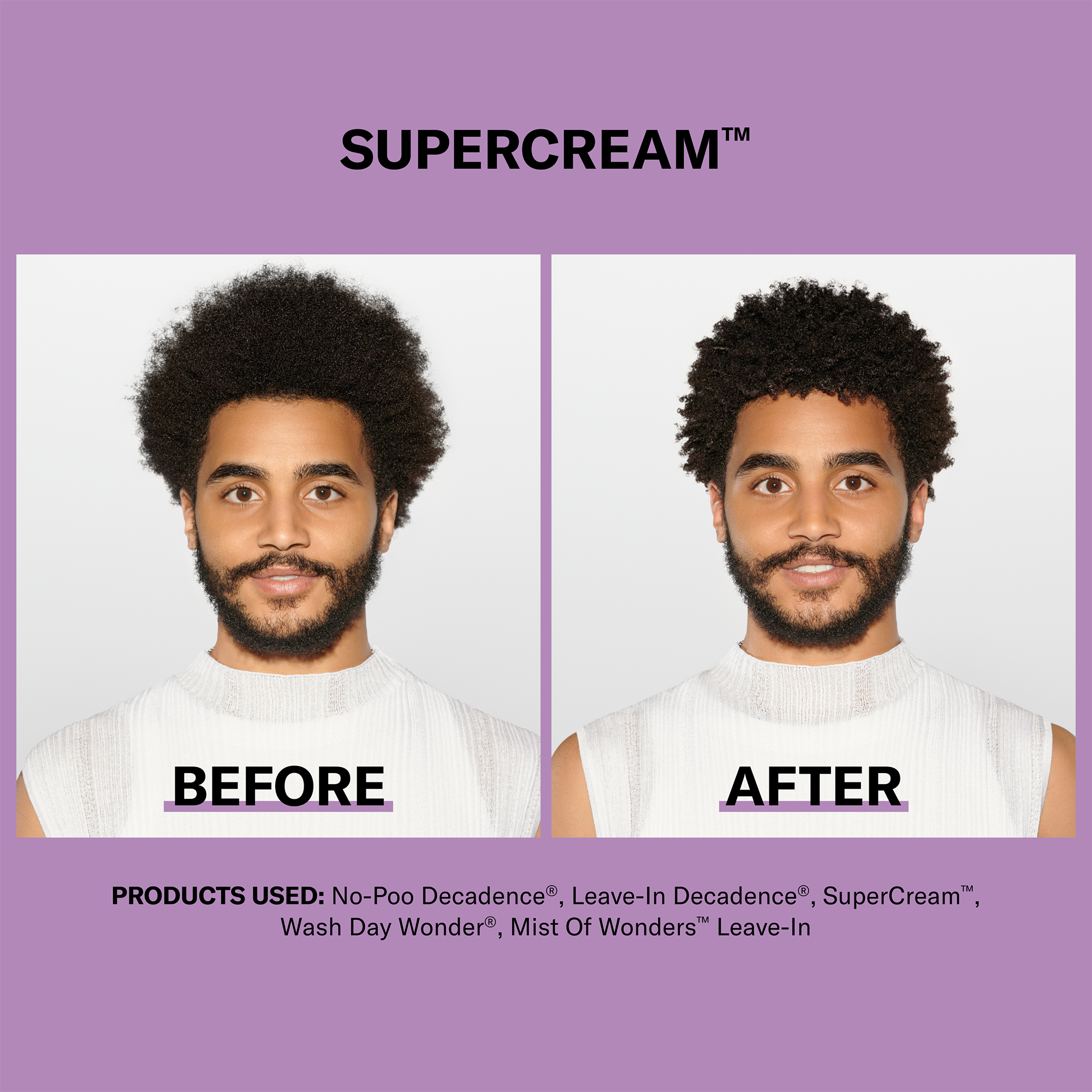 Meet DevaCurl's superhero styler: SUPERCREAM Rich Coconut-Infused Definer. This multitasking, ultra-rich cream with a hydra-definition blend, provides coarse curls with smoothness, shape, shine and frizz control.