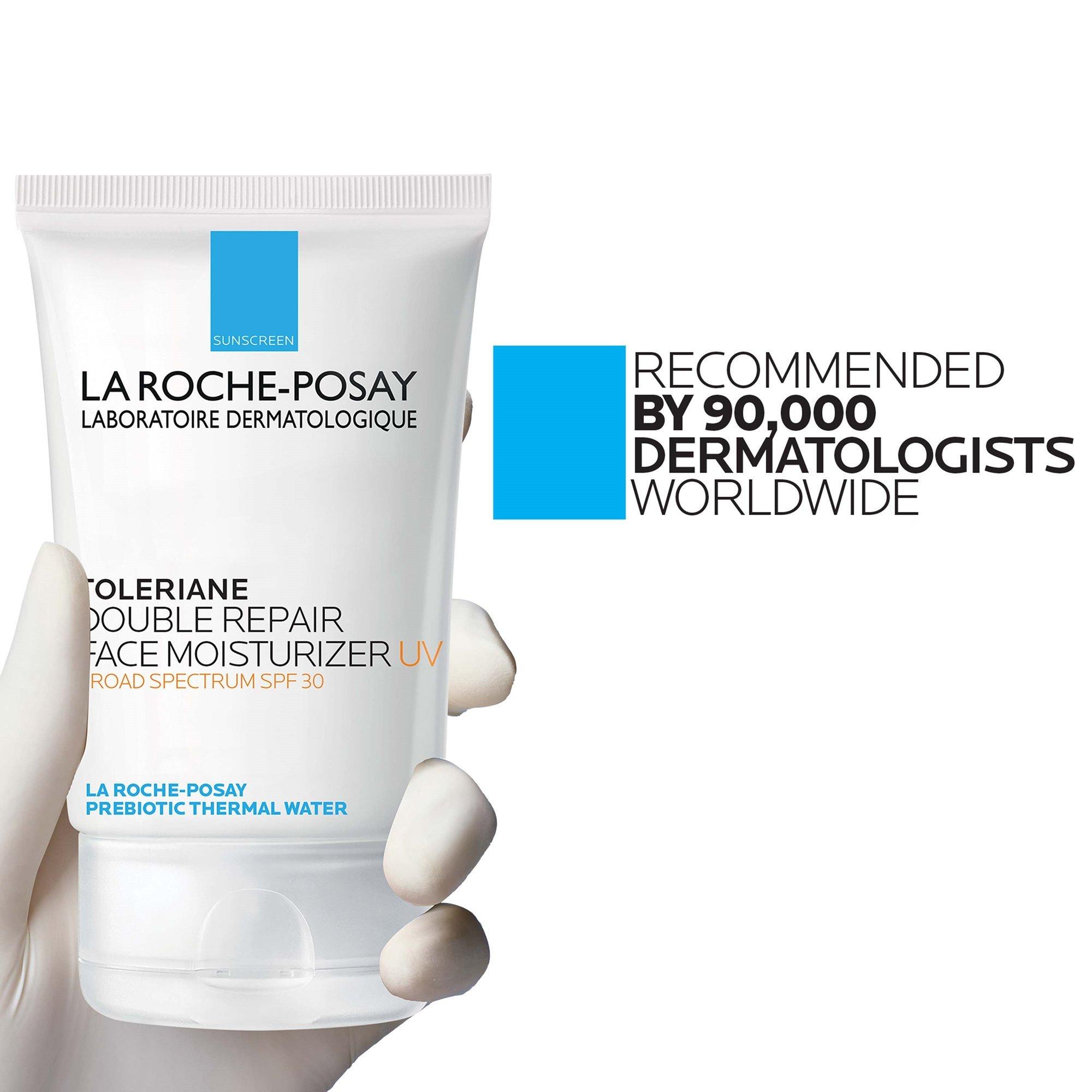 La Roche-Posay Toleriane Double Repair Face Moisturizer UV SPF 30 provides all-day hydration and prebiotic benefits for the skin barrier.