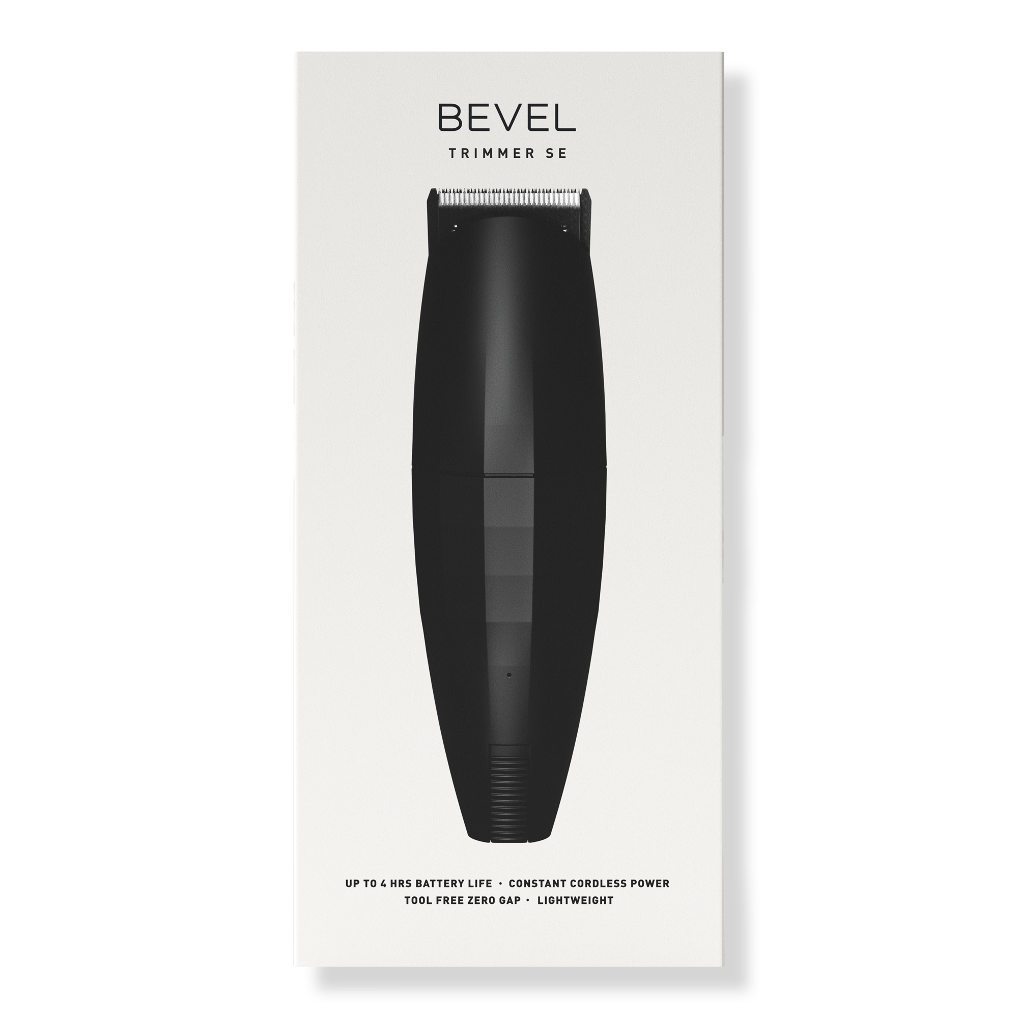 The Bevel Trimmer SE (Special Edition) is a cordless trimmer with a 4-hour rechargeable battery. It is lightweight and has a plastic body with a non-removable battery. It is made with the same Bevel Blades as the Premium Bevel Trimmer and tool-free Bevel Dial zero-gap adjustments.