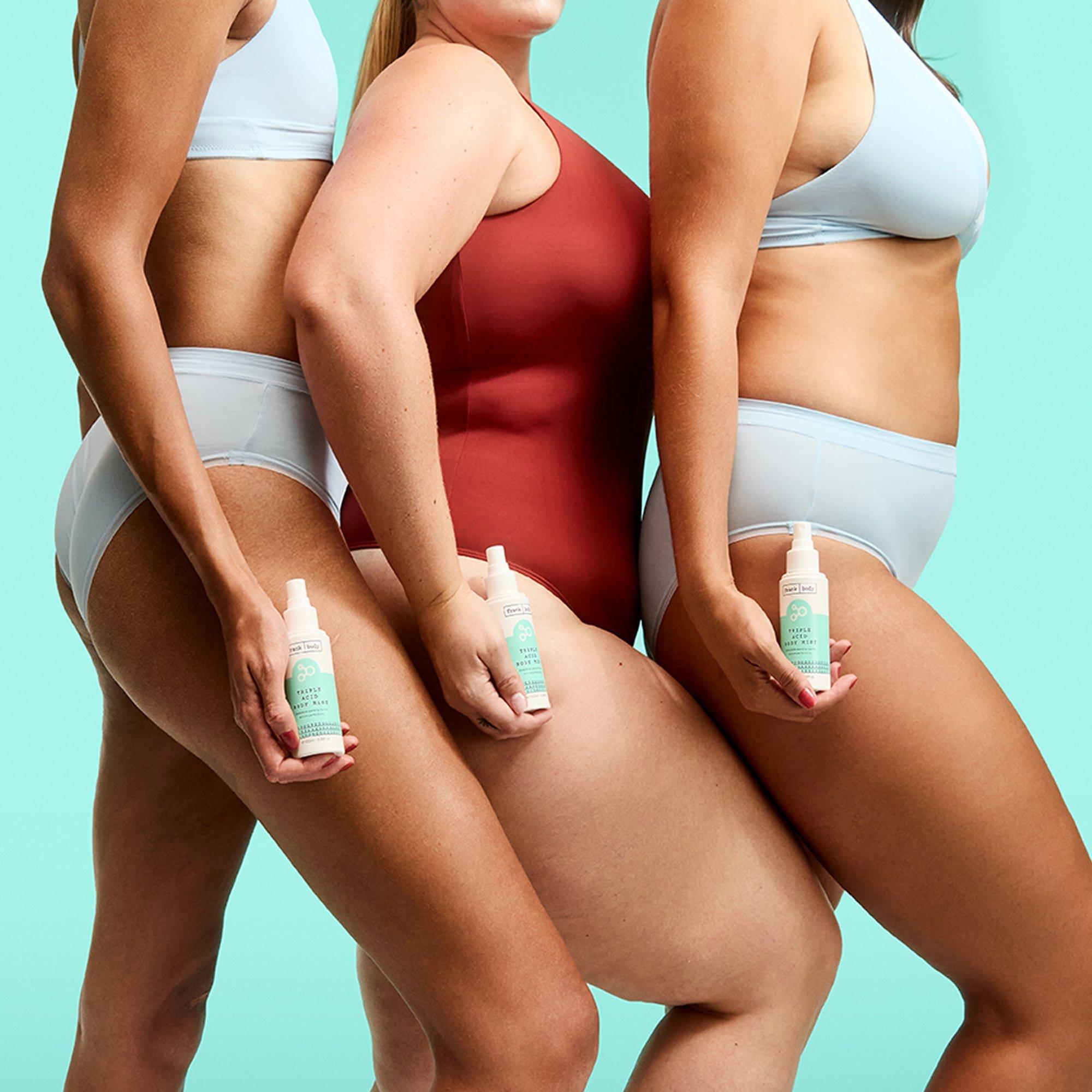 Frank Body Triple Acid Body Mist's 360 nozzle means you can reach every nook and cranny prone to unwelcome visitors like ingrown hairs, bumps and spots. Made with a blend of salicylic, glycolic and lactic acids with niacinamide and zinc to keep your skin clear and smooth in hard to reach places.