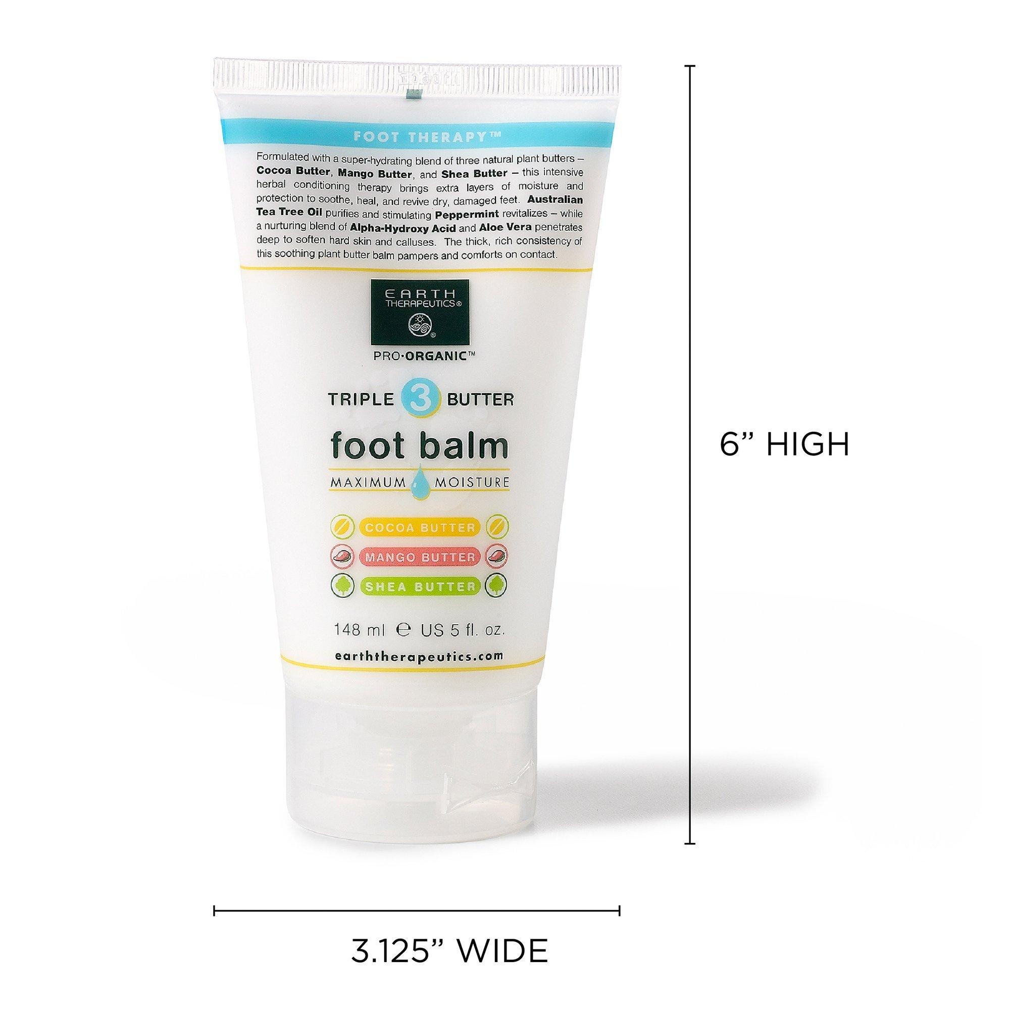 Earth Therapeutics Triple Butter organic foot balm. Intensive herbal conditioning therapy that brings extra layers of moisture and protectin to soothe, heal and revive dry, damaged feet.