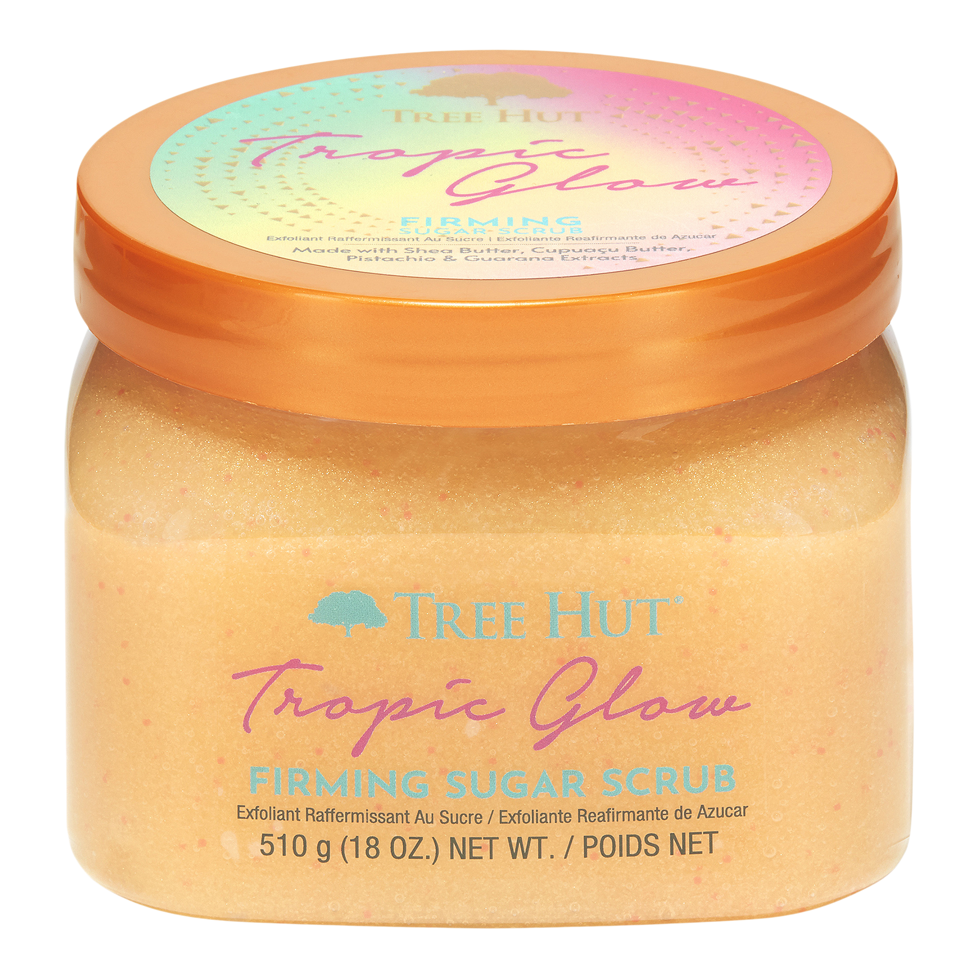 Experience intense exfoliation & glowing skin with Tree Hut Shea Sugar Body Scrub in warm summer scent of Tropic Glow. Made with Sugar, Shea Butter, Cupuaçu Butter, Guarana & an array of natural oils including Pistachio, Evening Primrose, Avocado, Macadamia, Sweet Almond, Safflower and Orange Oils.