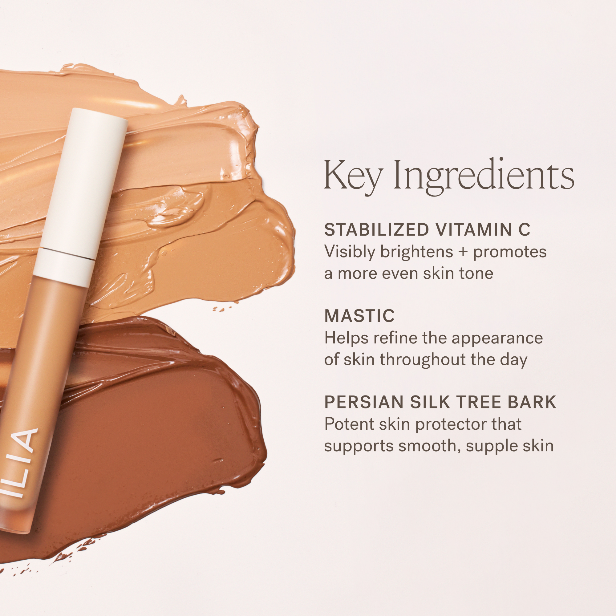 For best results, use immediately after ILIA True Skin Serum Foundation. Apply three dots of concealer below the eye and around any areas you would like to even out skin tone. Blend with your fingertips or complexion brush. Finish by gently pressing product into skin with your ring finger.