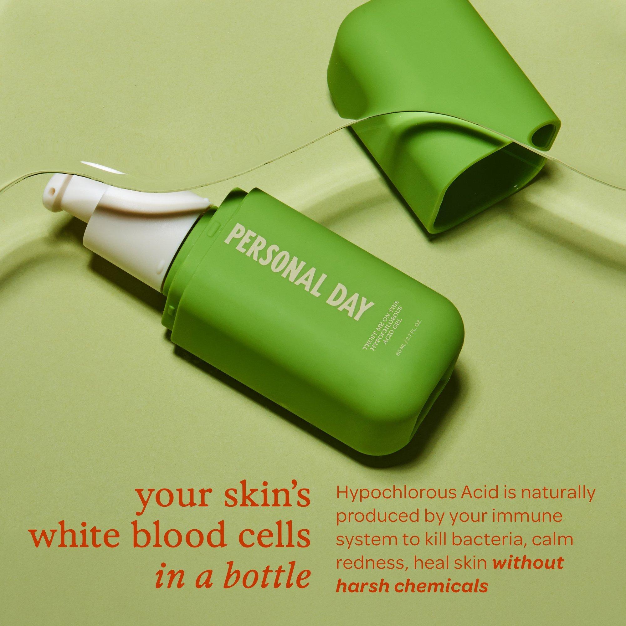 Hit refresh with Personal Day Trust Me on This Hypochlorous Acid Gel—your skin’s daily defense against breakouts, irritation, and redness. This cooling & calming gel helps boost healing after skin-picking and also helps fight bacteria on acne-prone areas to prevent future breakouts.
