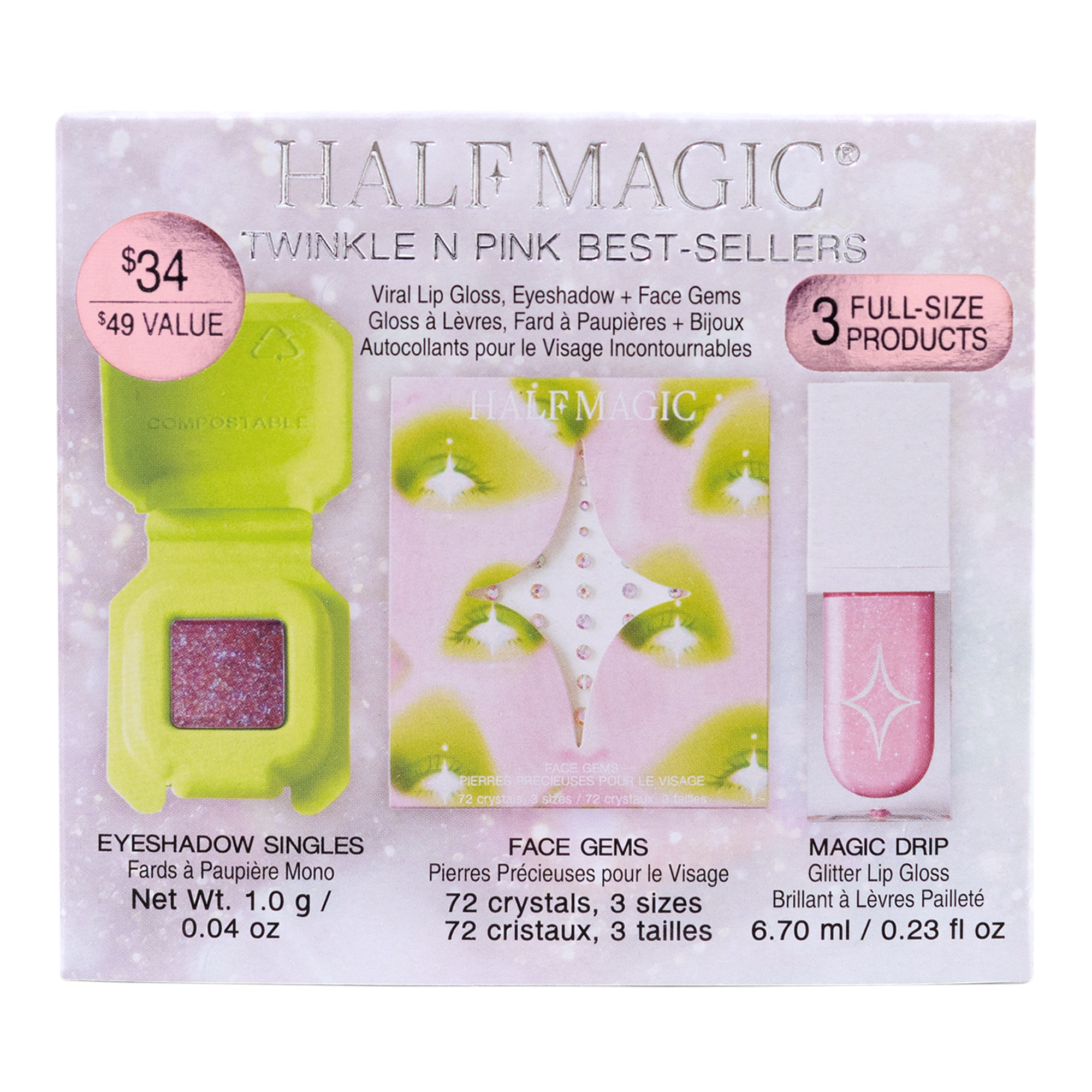 The retail price of the Half Magic Twinkle N Pink Best-Sellers Set is US$34.00. The shipping costs will depend on your shipping location. If you would like a shipping quote for the Half Magic Twinkle N Pink Best-Sellers Set, simply add the item to the cart at the top of this page. You will then be taken to a page where you can enter your shipping details to see the costs and estimated delivery times for the available FedEx and UPS shipping options.