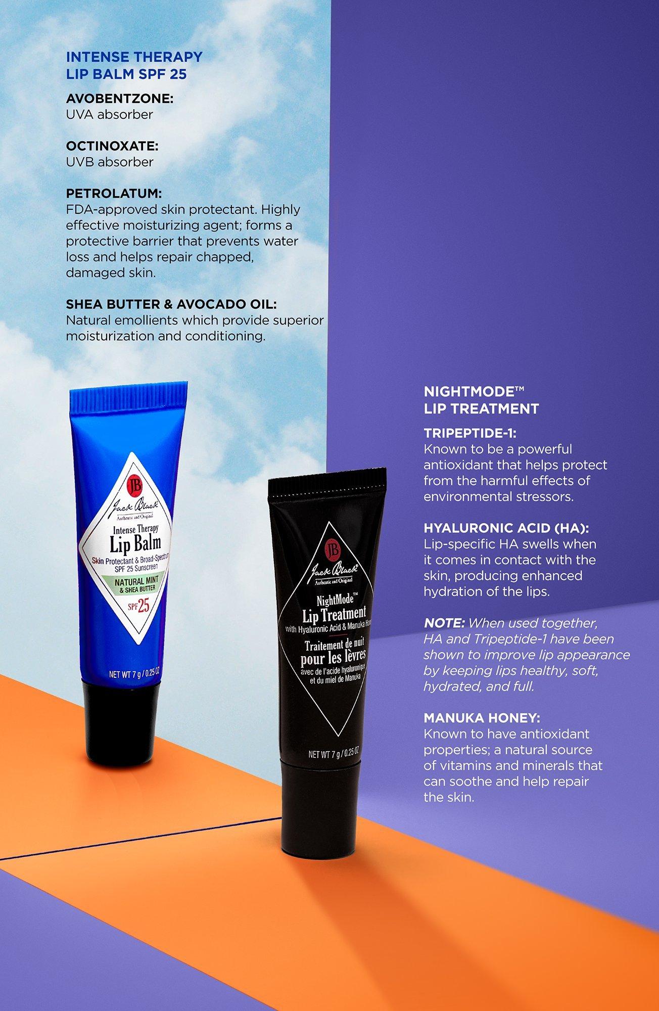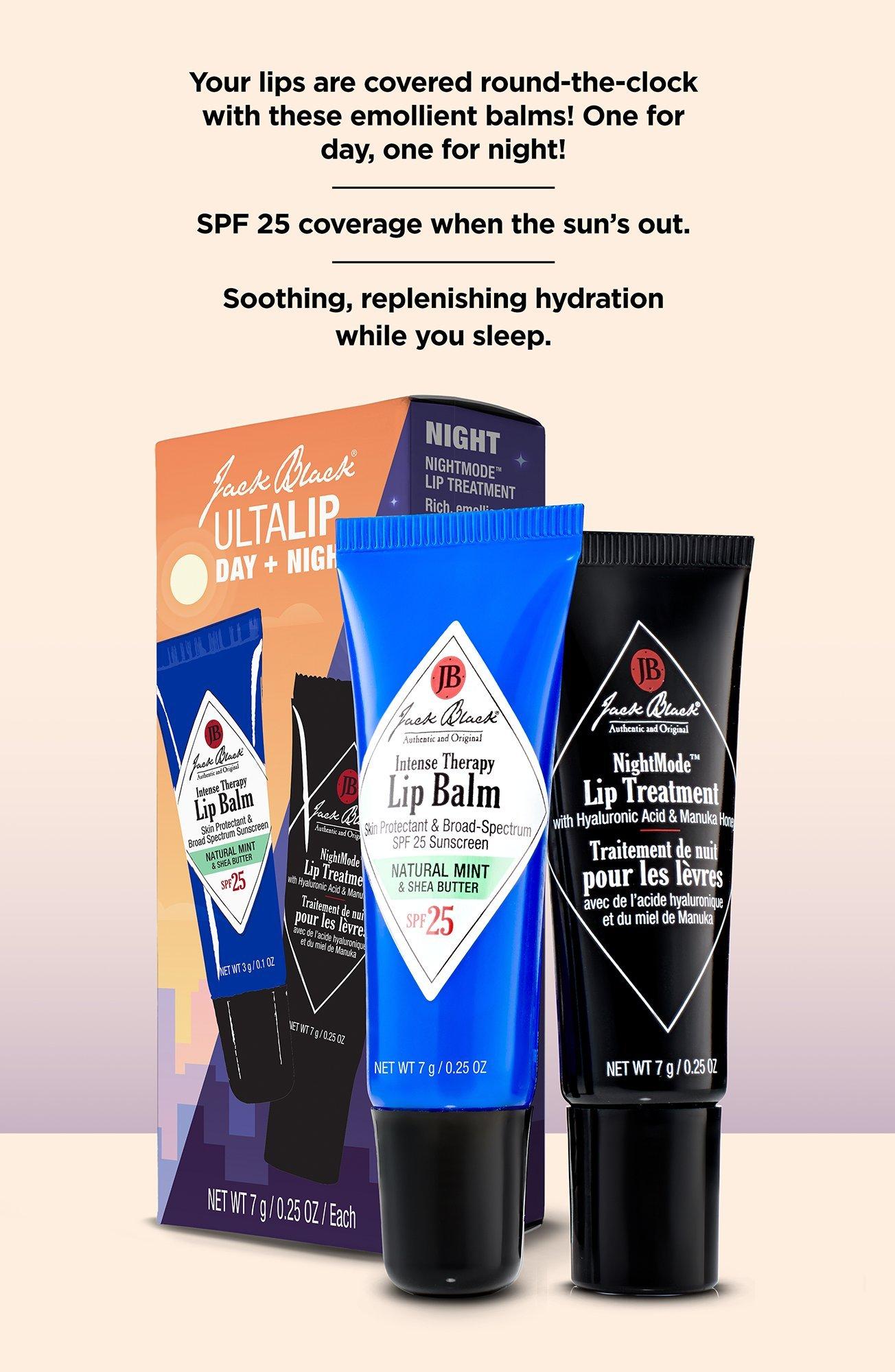Your lips are covered round-the-clock with these emollient balms created for day and night! Jack Black's Lip Day + Night Set is designed to keep your lips smooth and hydrated.