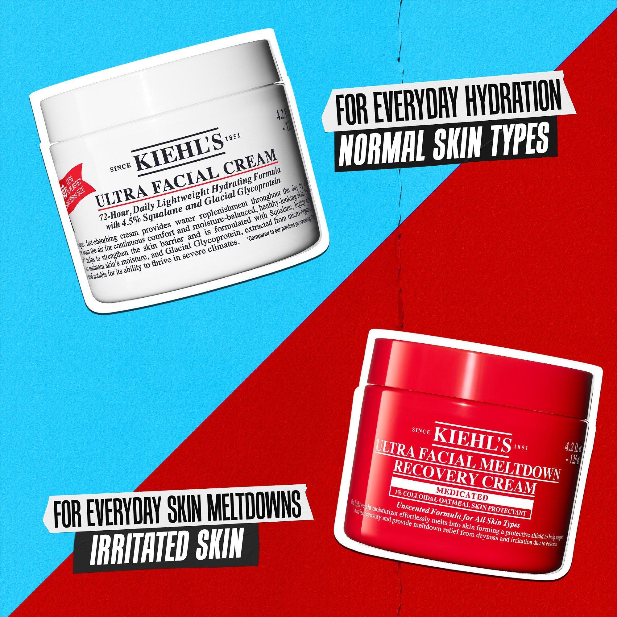 Kiehl's Ultra Facial Meltdown Recovery Cream Medicated is a fragrance-free moisturizer with bisabolol and micro colloidal compounds. It soothes irritation in 5 seconds, restores resilience, and accelerates barrier recovery for sensitive, dry, eczema-prone, and psoriasis-prone skin.