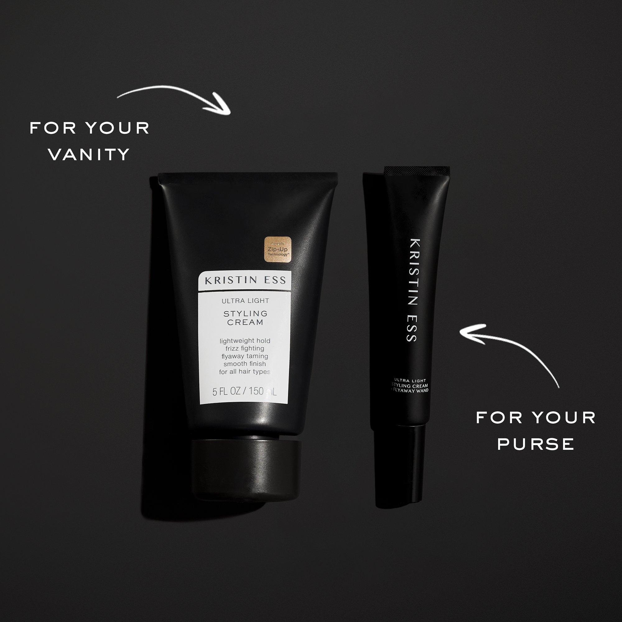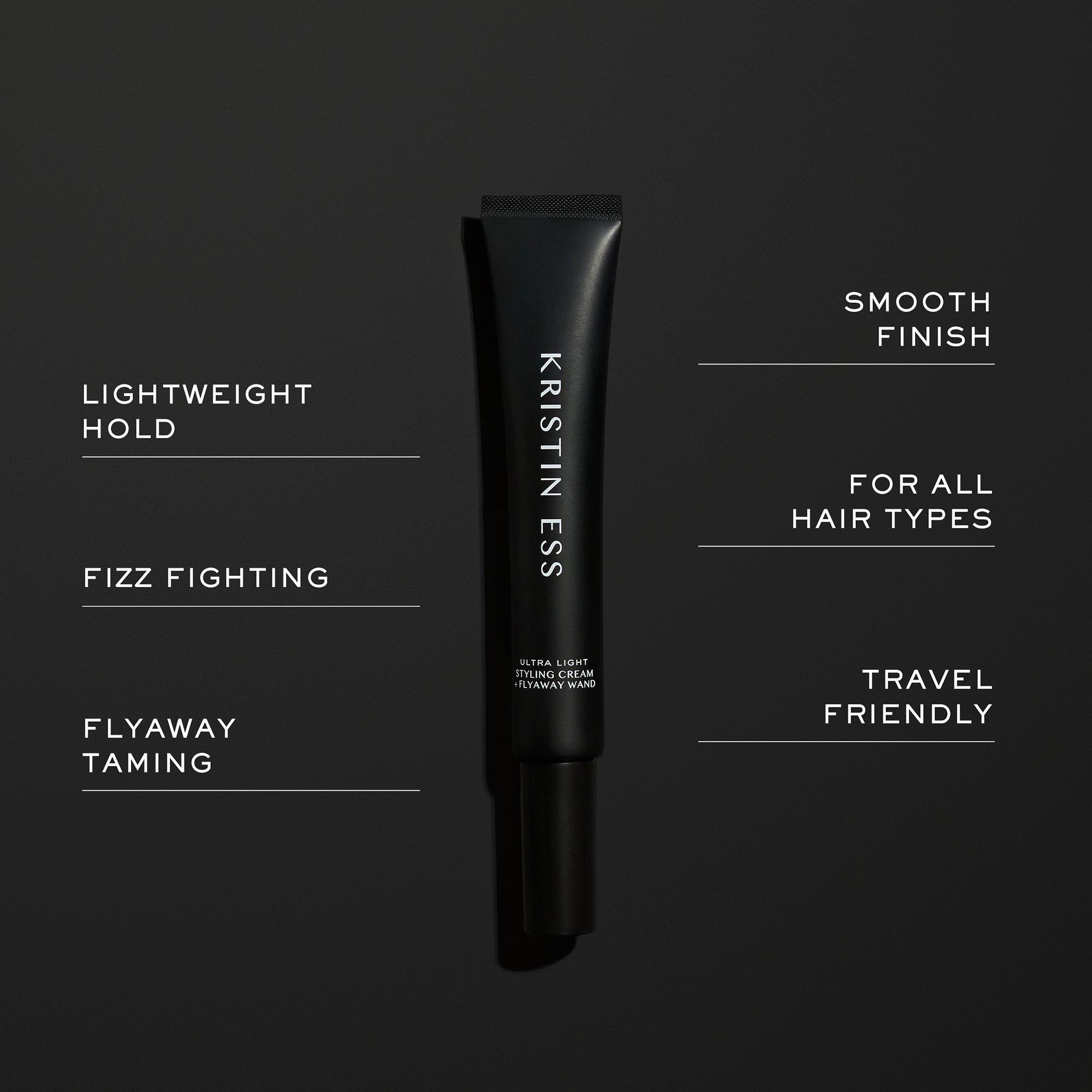 Meet the on-the-go version of the Kristin Ess Hair Ultra Light Styling Cream, complete with a fluffy, high-control flyaway taming wand designed specifically for your hair. Created to help you get smooth, controlled, and perfectly defined styles wherever and whenever.