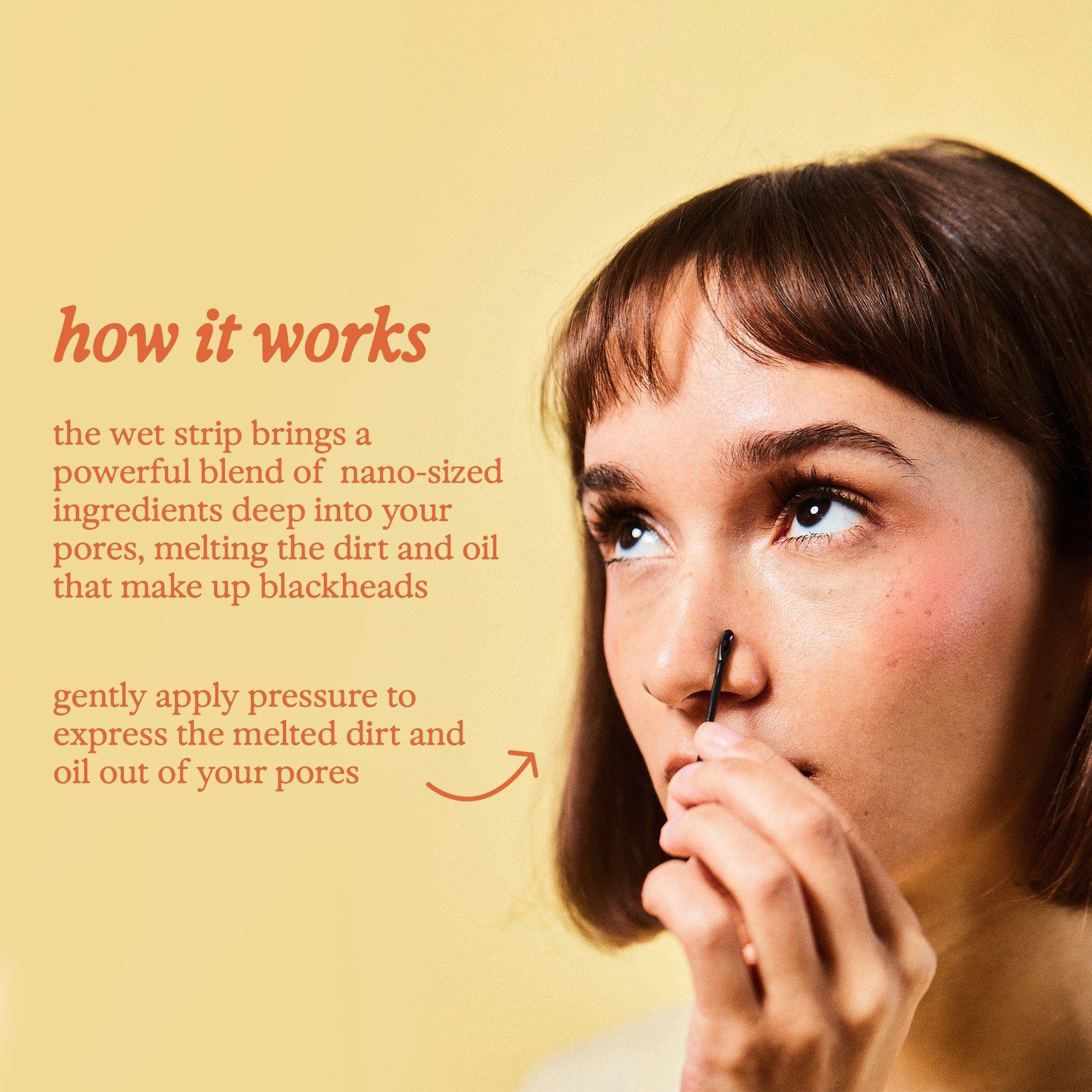 Note: The strip will be wet and will remain wet after wearing for 5-10 minutes to bring the ingredients deep into your pores.
