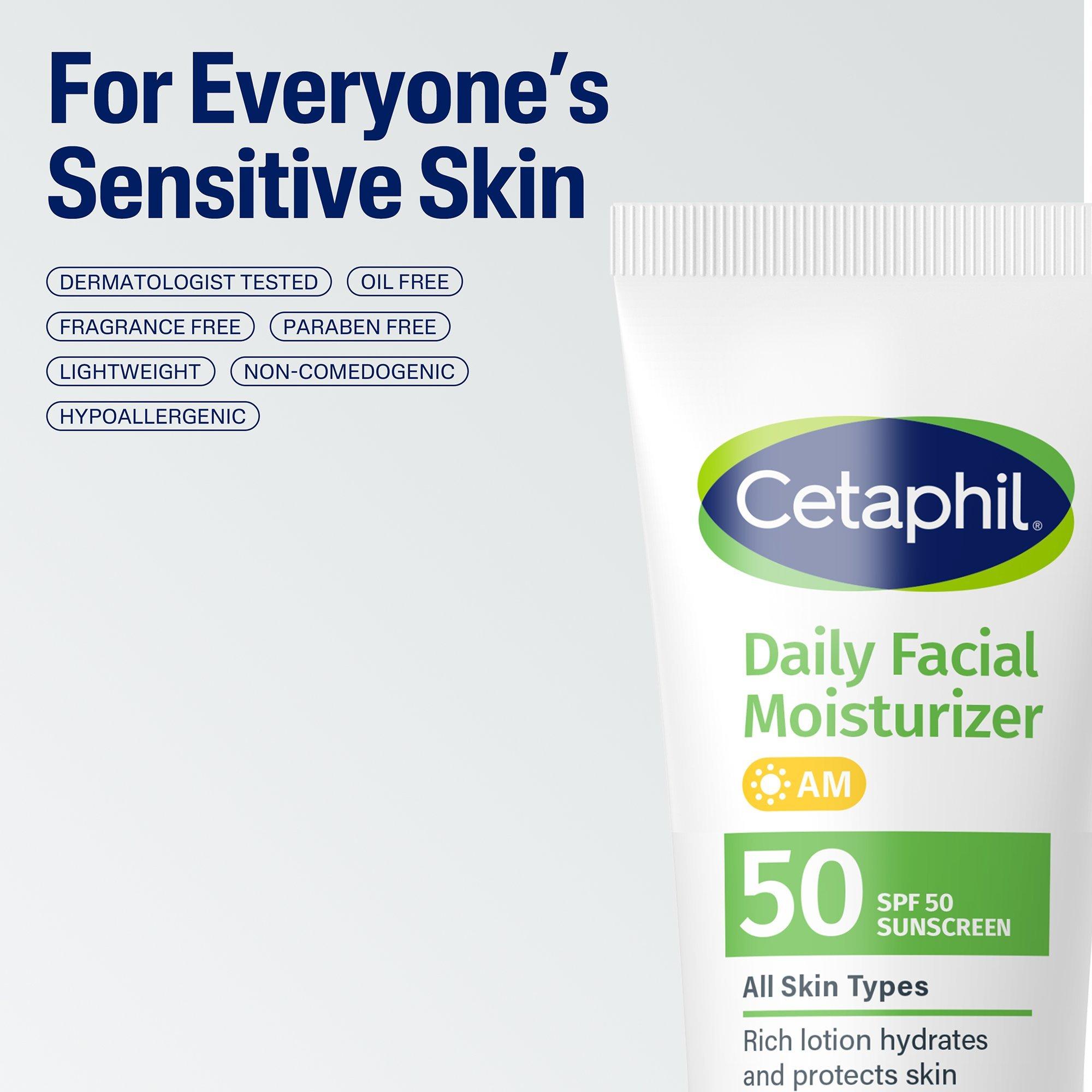 CETAPHIL Daily Facial Moisturizer SPF 50+ is a lightweight and fast-absorbing moisturizer designed to hydrate, nourish and protect dry to normal skin types. SPF 50+ provides strong protection against the sun's damaging rays to keep skin looking young and vibrant.