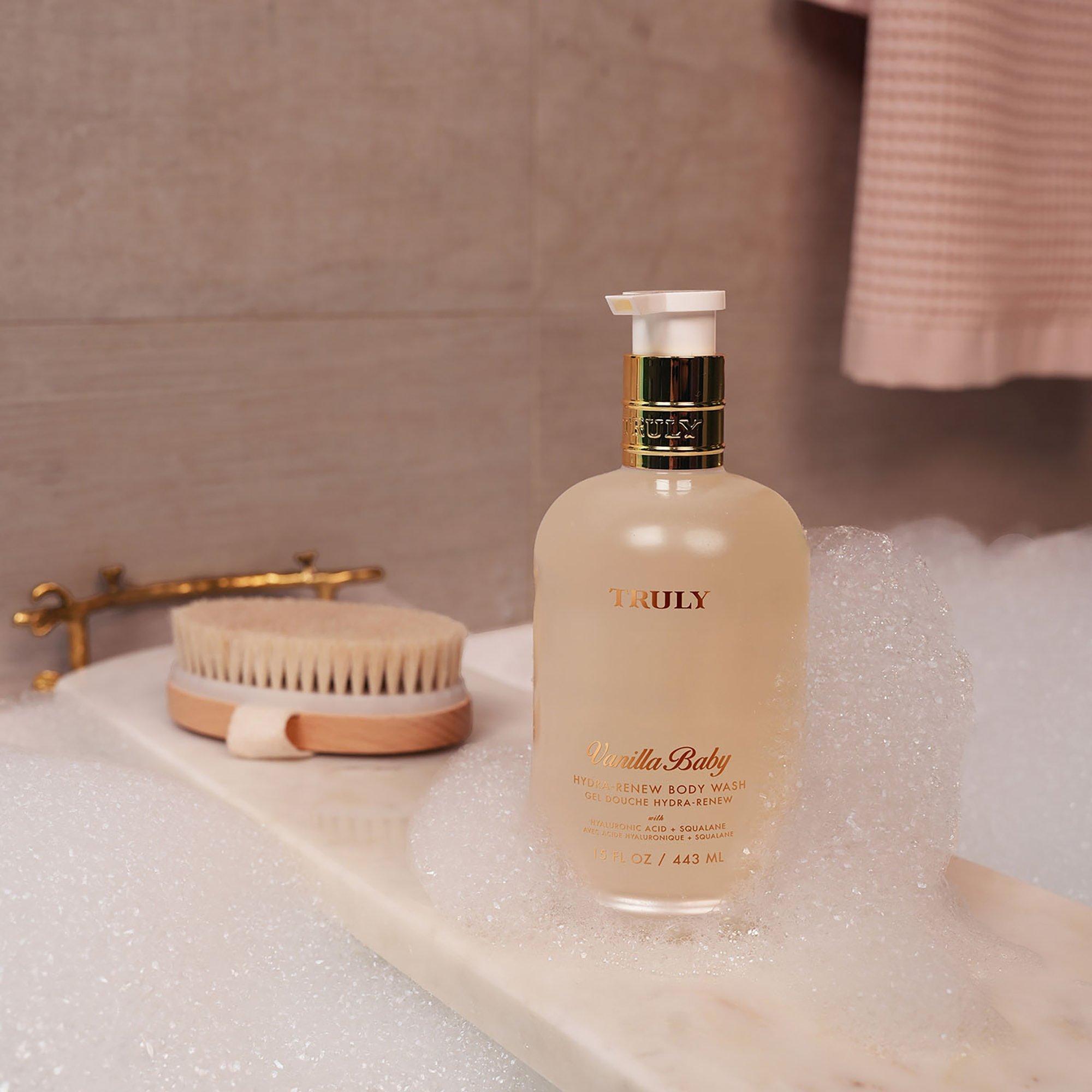 Truly’s Vanilla Baby Hydra-Renew Body Wash is a skin renewing, sulfate free body wash infused with hyaluronic acid & squalane for clean, deeply nourished skin.