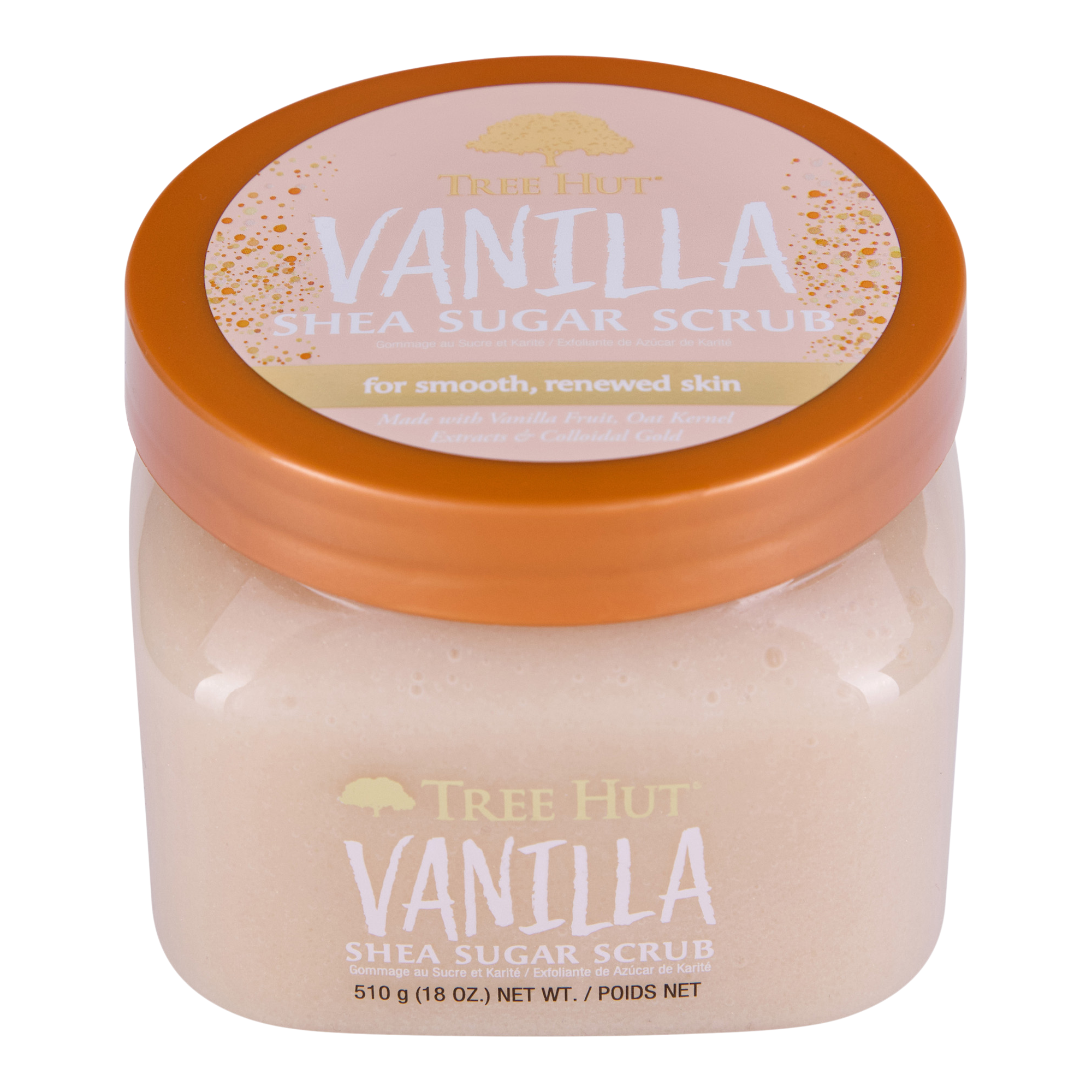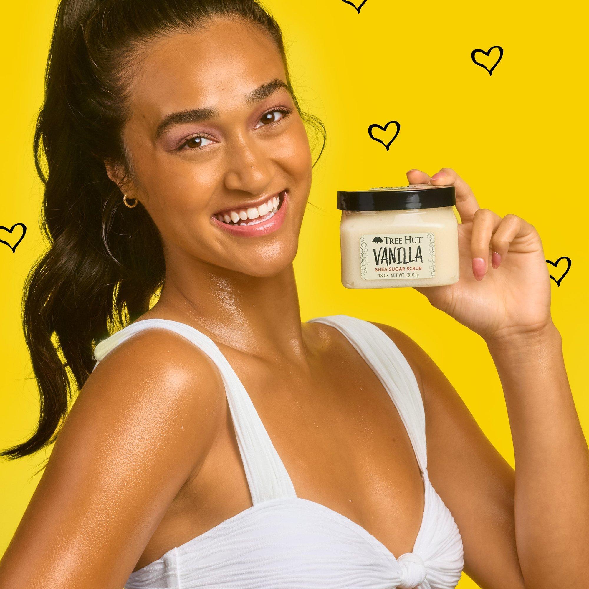 Reveal glowing skin with Tree Hut Sugar Body Scrub in the creamy, classic scent of Vanilla. Made with Sugar, Shea Butter, Vanilla, Colloidal Gold and an array of natural oils like Evening Primrose, Avocado, Macadamia, Sweet Almond, Safflower and Orange Oils.