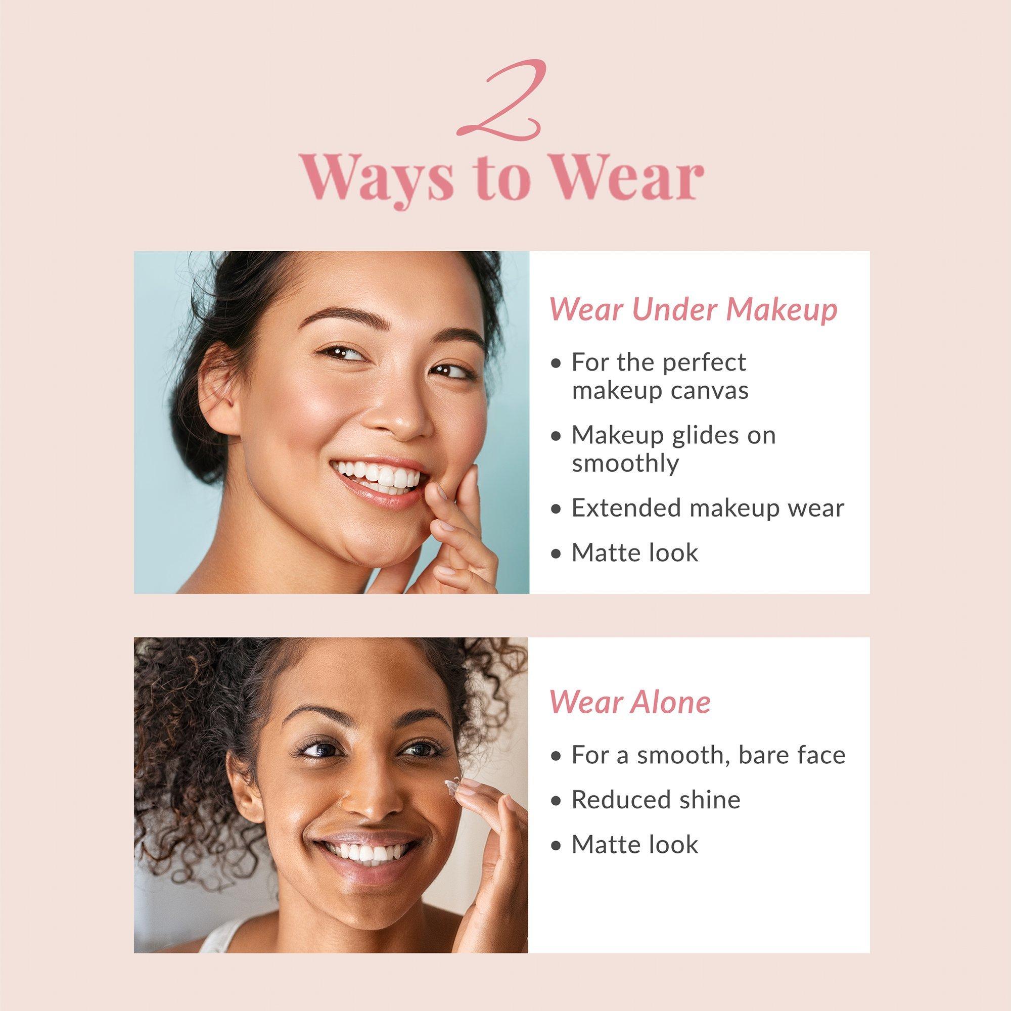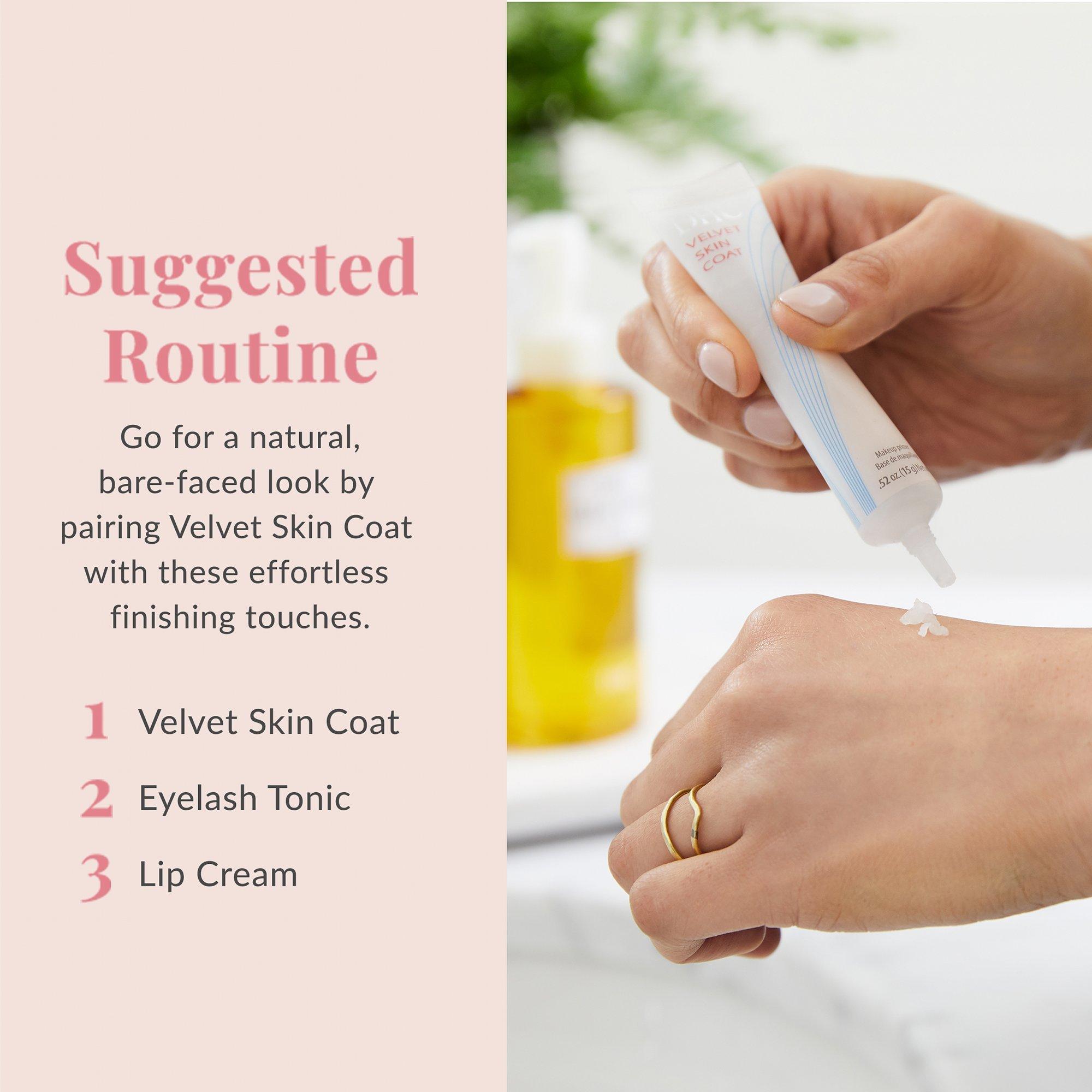 Following your regular skincare routine, smooth Velvet Skin Coat primer evenly over face or onto areas of concern, including fine lines and visible pores. Use alone or follow with usual makeup application.