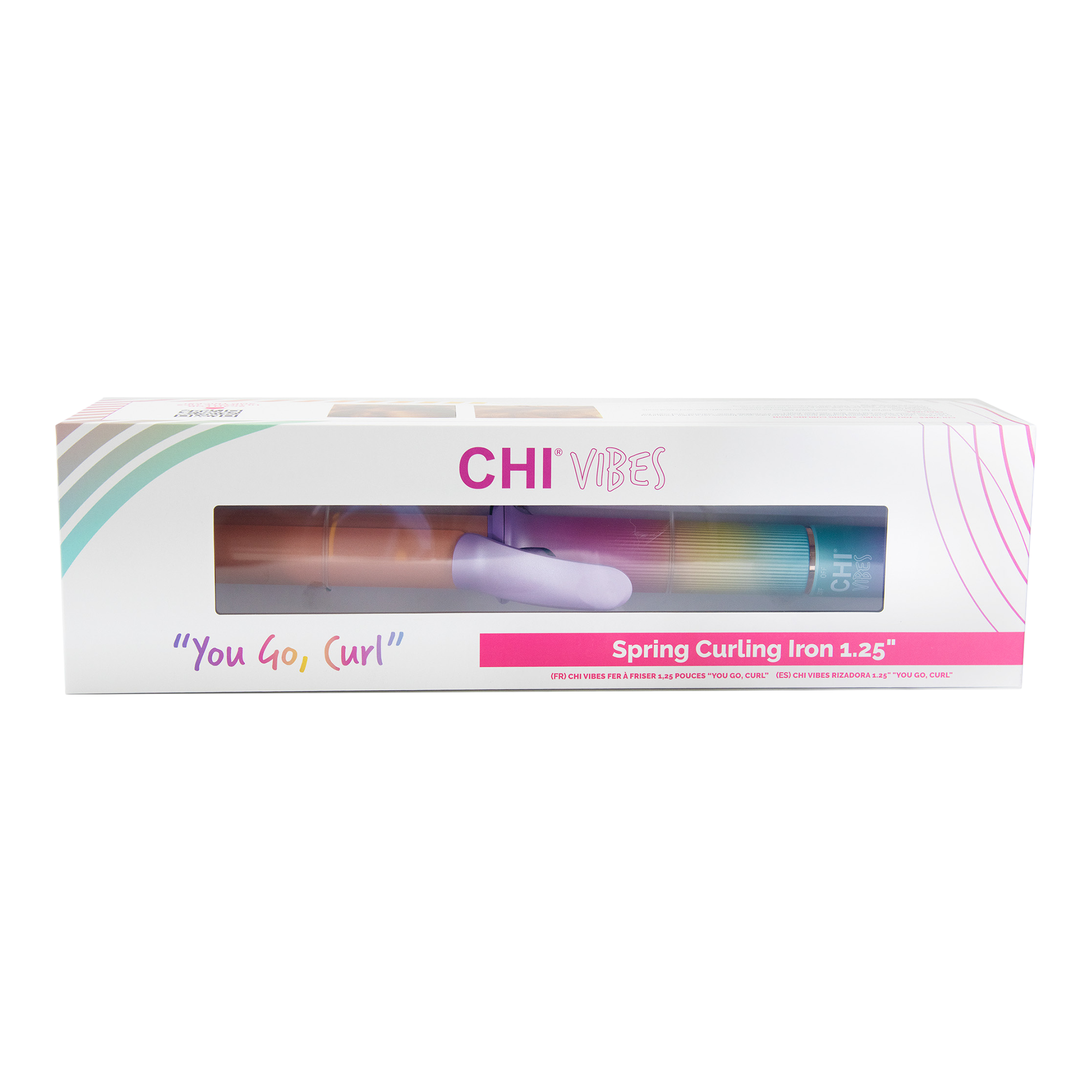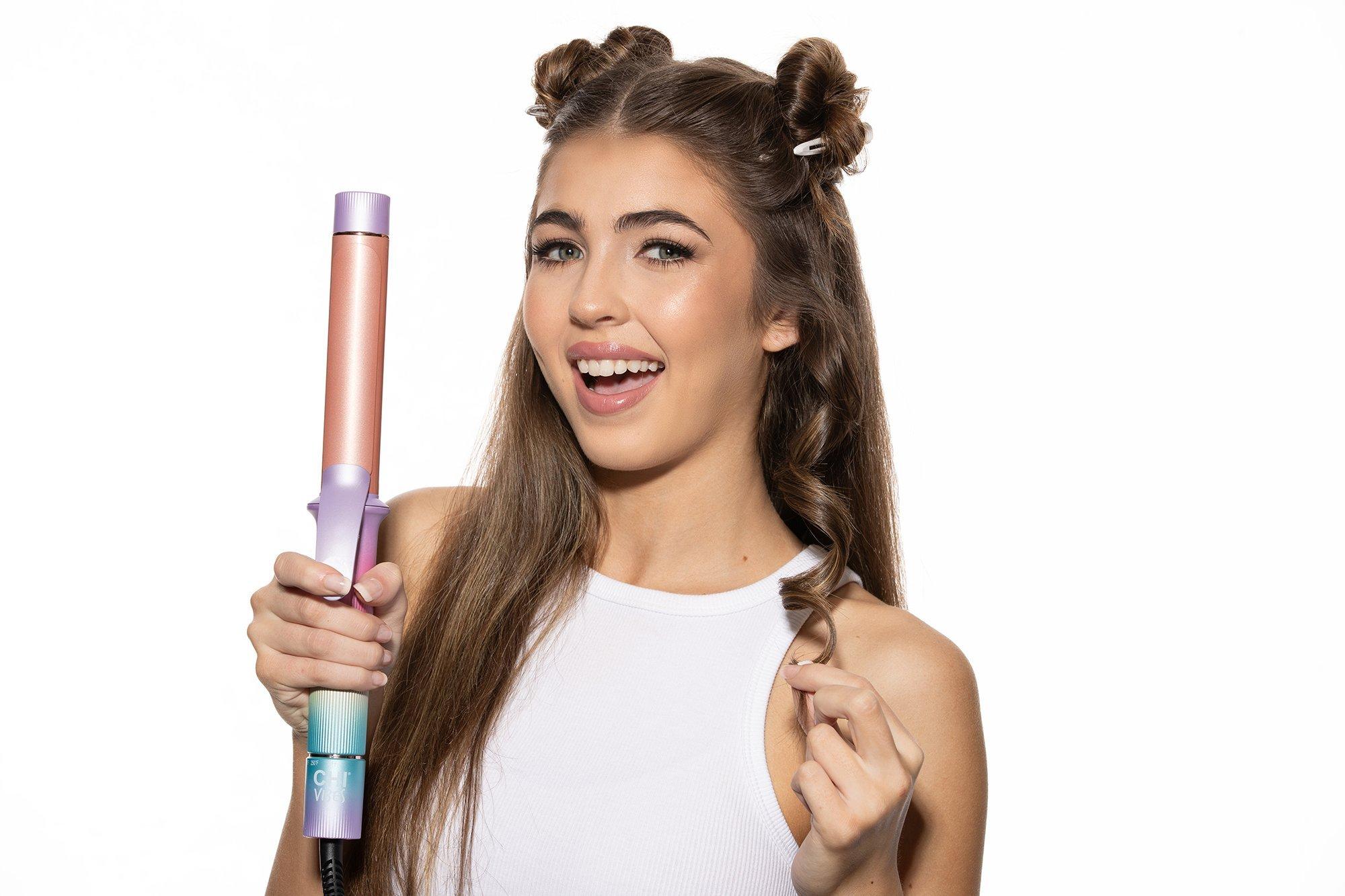 The CHI Vibes "You Go, Curl" Curling Iron features 1.25" rose gold ceramic plates that will give your hair incredible shine, volume, and curls for days.