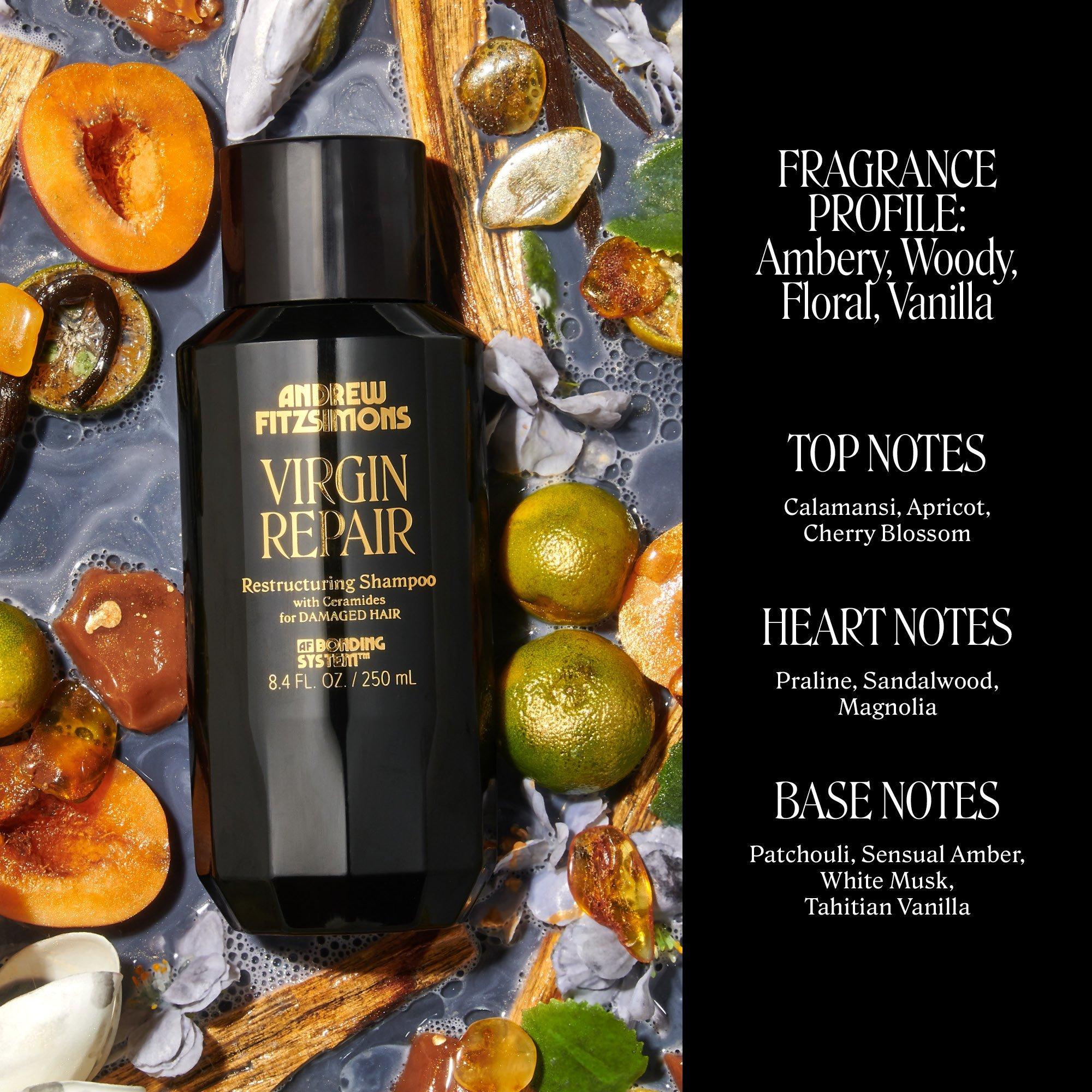 Your virgin hair, reborn. Andrew Fitzsimons' Virgin Repair Restructuring Shampoo is formulated with ceramides that help increase strength and elasticity to damaged hair, assisting in reducing breakage and further damage that may be caused by heat, styling, or chemical factors.